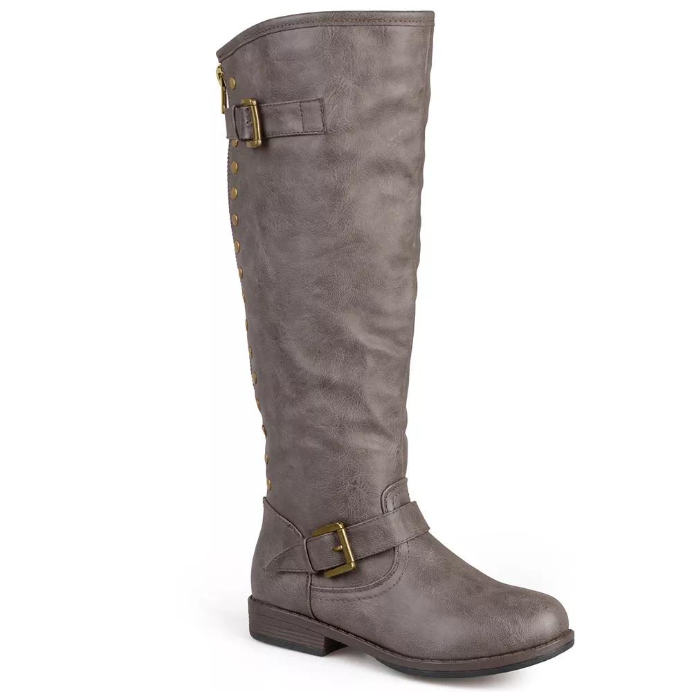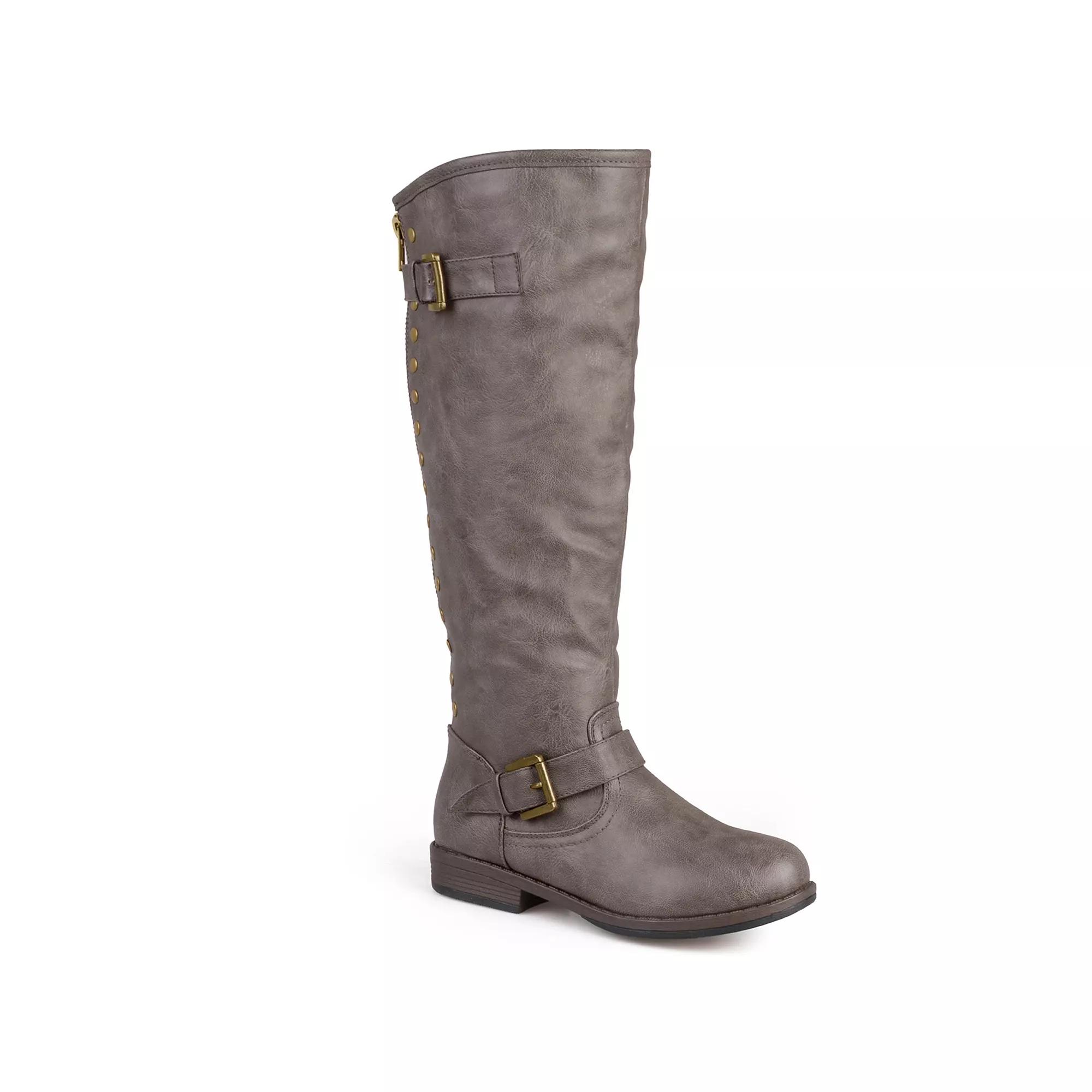 With a sleek silhouette and studded accents, you'll make a stylish statement in these Spokane boots from Journee. WC = Medium Width, Wide Calf. M XWC = Medium Width, Extra Wide Calf. W = Wide Width, Regular Calf. W WC = Wide Width, Wide Calf. W XWC = Wide Width, Extra Wide Calf. Click this FOOTWEAR GUIDE to find the perfect fit and more! - https://www.kohls.com/feature/shoesizeguide.jsp. BOOT FEATURES: Knee-high styling. Strap and buckle accents. Full-length back zipper with studded trim. BOOT CONSTRUCTION: Manmade upper, Faux-fur lining, TPR outsole. BOOT DETAILS: Round toe, Zipper closure, Lightly padded footbed, 1-in. heel, 16-in. shaft, 17-in. circumference, 18-in. WC circumference. 19-in. XWC circumference. Size: 7 M XWc. Color: Taupe. Gender: female. Age Group: kids. Pattern: Solid. Material: SYNTHETIC.