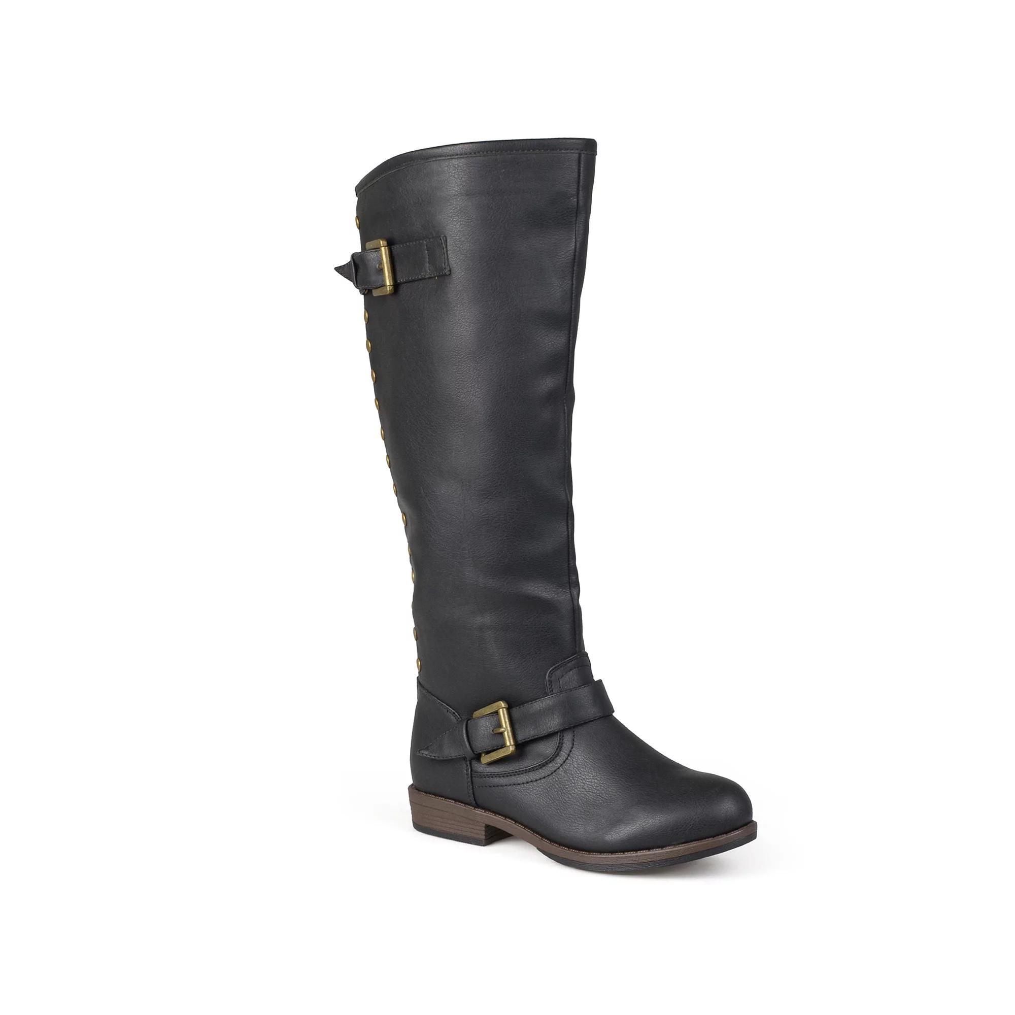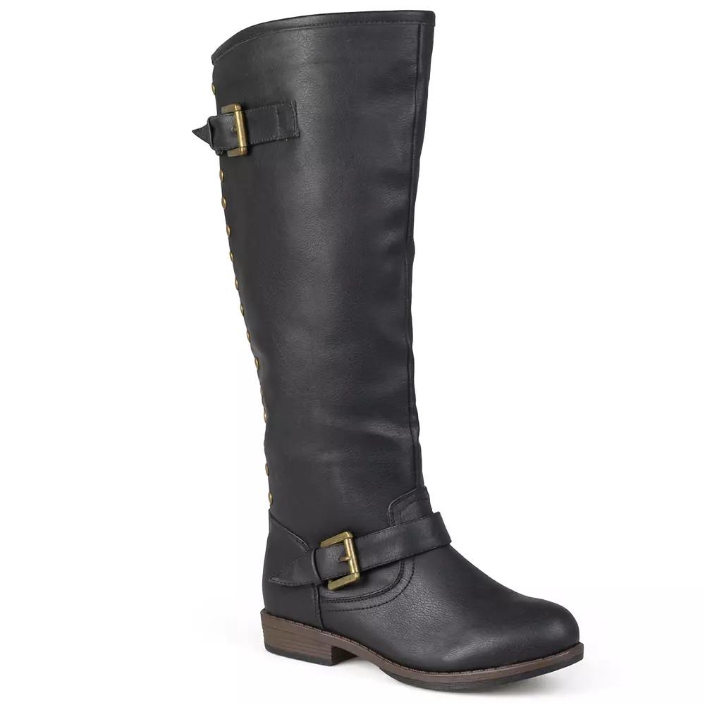 With a sleek silhouette and studded accents, you'll make a stylish statement in these Spokane boots from Journee. WC = Medium Width, Wide Calf. M XWC = Medium Width, Extra Wide Calf. W = Wide Width, Regular Calf. W WC = Wide Width, Wide Calf. W XWC = Wide Width, Extra Wide Calf. Click this FOOTWEAR GUIDE to find the perfect fit and more! - https://www.kohls.com/feature/shoesizeguide.jsp. BOOT FEATURES: Knee-high styling. Strap and buckle accents. Full-length back zipper with studded trim. BOOT CONSTRUCTION: Manmade upper, Faux-fur lining, TPR outsole. BOOT DETAILS: Round toe, Zipper closure, Lightly padded footbed, 1-in. heel, 16-in. shaft, 17-in. circumference, 18-in. WC circumference. 19-in. XWC circumference. Size: 7.5 M XWc. Color: Black. Gender: female. Age Group: kids. Pattern: Solid. Material: SYNTHETIC.