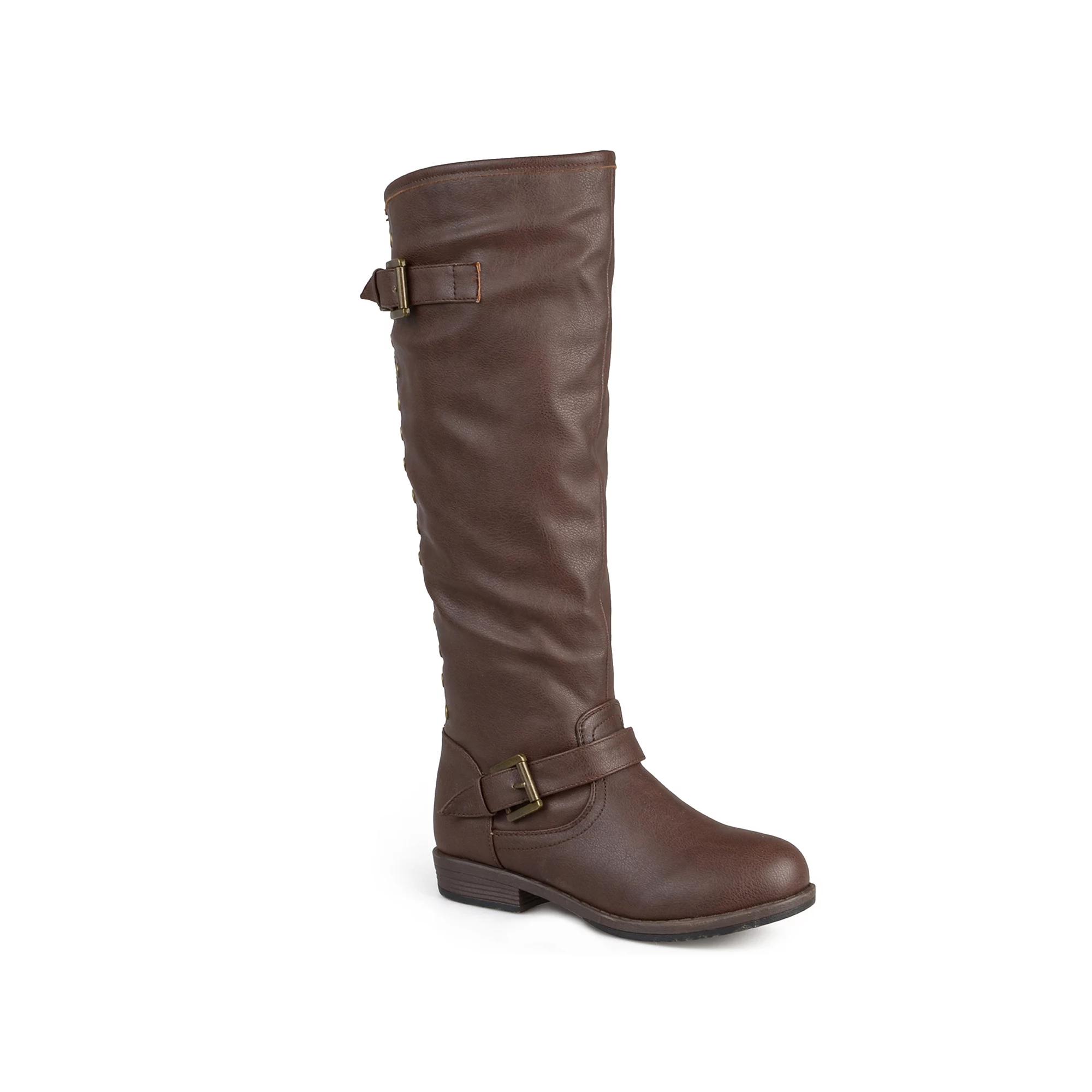 With a sleek silhouette and studded accents, you'll make a stylish statement in these Spokane boots from Journee. WC = Medium Width, Wide Calf. M XWC = Medium Width, Extra Wide Calf. W = Wide Width, Regular Calf. W WC = Wide Width, Wide Calf. W XWC = Wide Width, Extra Wide Calf. Click this FOOTWEAR GUIDE to find the perfect fit and more! - https://www.kohls.com/feature/shoesizeguide.jsp. BOOT FEATURES: Knee-high styling. Strap and buckle accents. Full-length back zipper with studded trim. BOOT CONSTRUCTION: Manmade upper, Faux-fur lining, TPR outsole. BOOT DETAILS: Round toe, Zipper closure, Lightly padded footbed, 1-in. heel, 16-in. shaft, 17-in. circumference, 18-in. WC circumference. 19-in. XWC circumference. Size: 7. Color: Brown. Gender: female. Age Group: kids. Pattern: Solid. Material: OTHER MATERIAL.