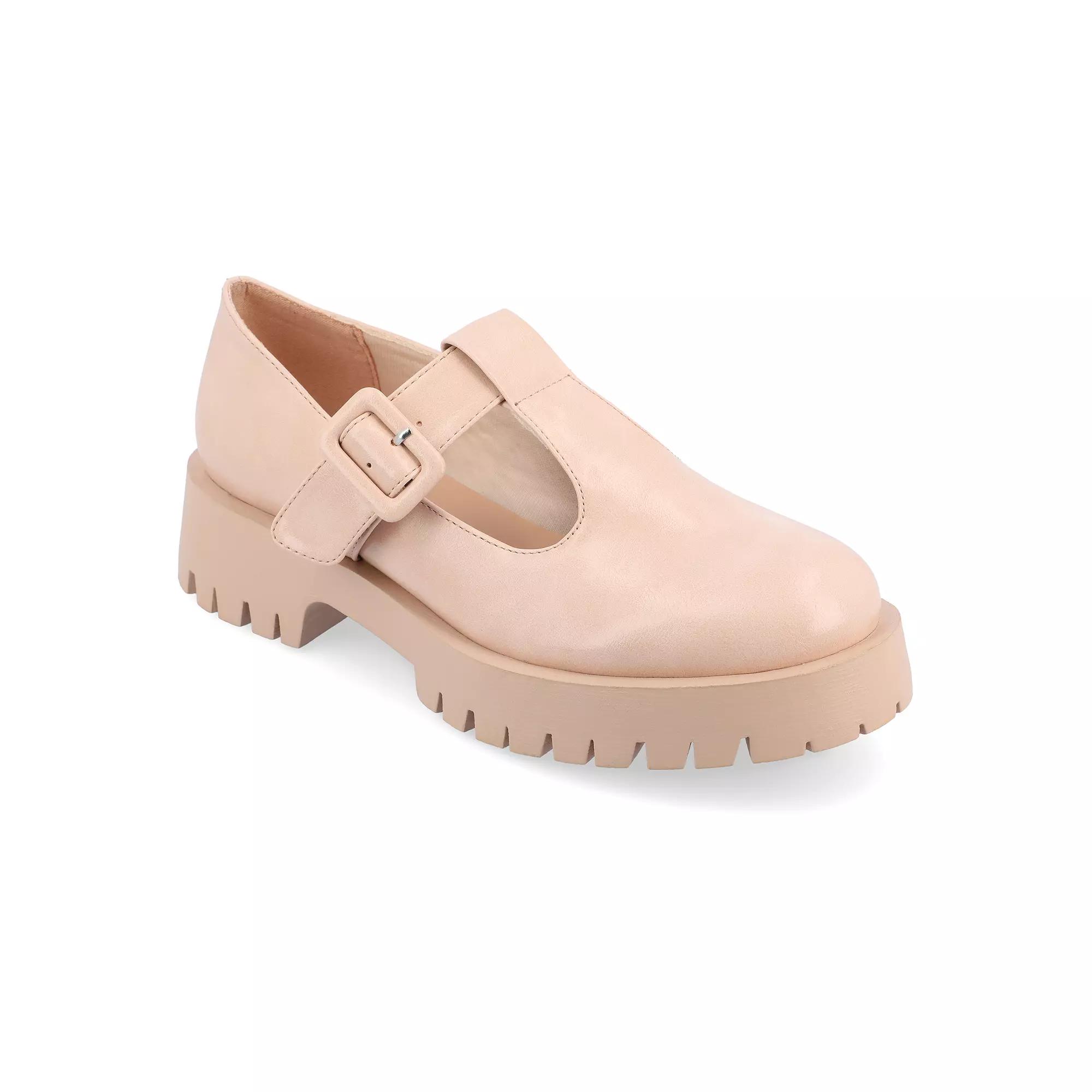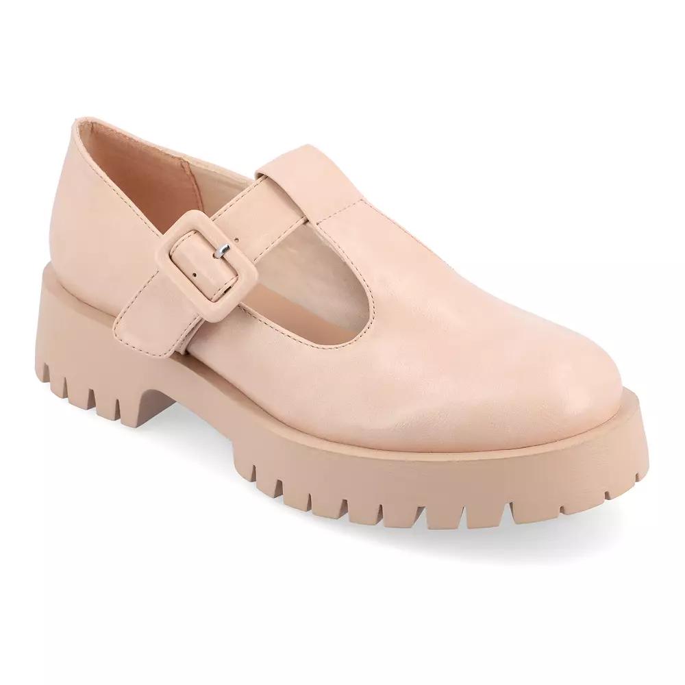 Step into style with these Journee Suvi women's mary jane flats. Click this FOOTWEAR GUIDE to find the perfect fit and more! - https://www.kohls.com/feature/shoesizeguide.jsp. FEATURES: footbed, Treaded outsole for traction. DETAILS: Faux leather upper, Fabric lining, Man-made outsole, Round toe, Buckle closure, footbed, 1.5-in. heel, 1-in. platform, Spot clean, Imported. Size: 8. Color: Blush. Gender: female. Age Group: adult. Material: SYNTHETIC.