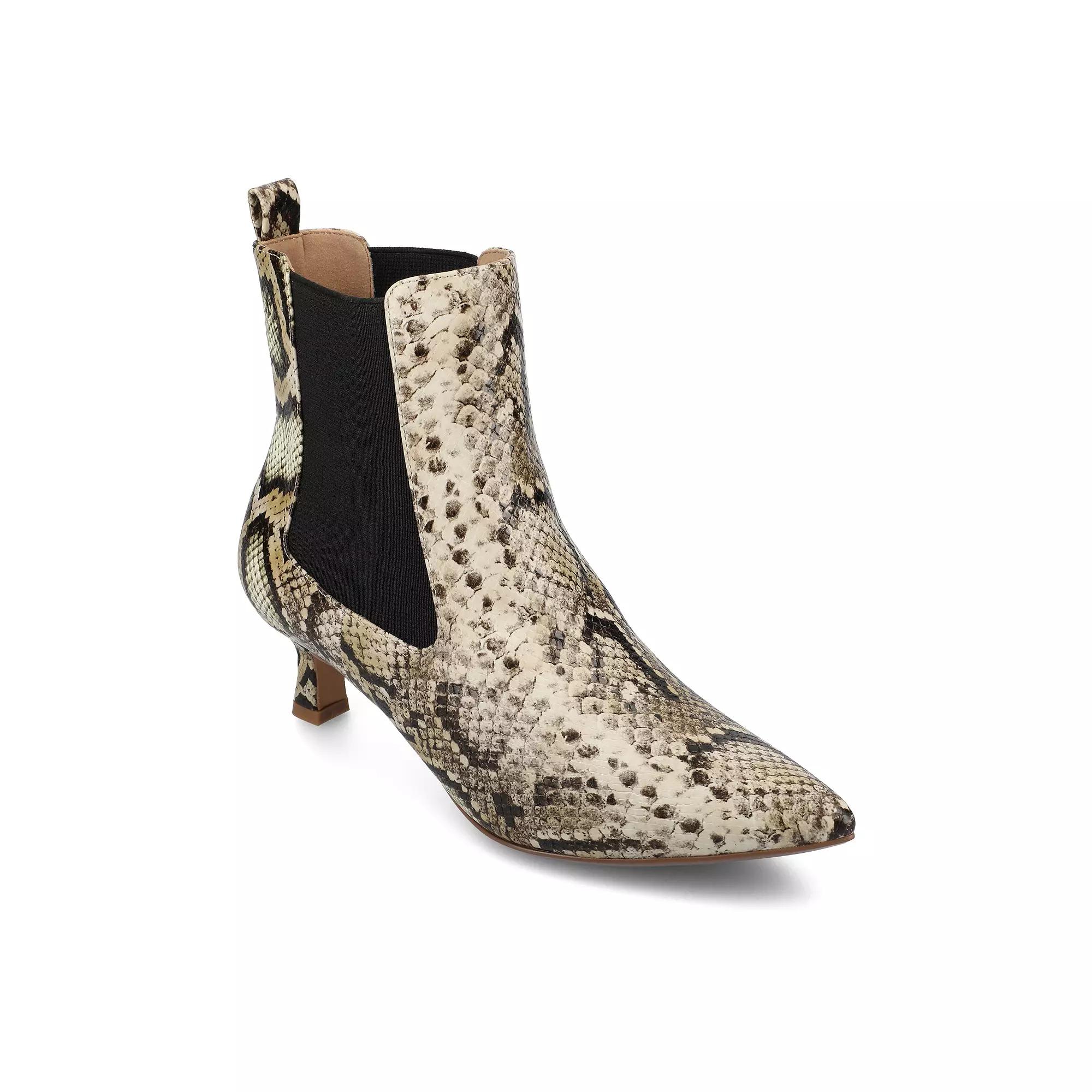 Chic style comes easily with these womens Tenlee ankle boots from Journee Collection. Click this FOOTWEAR GUIDE to find the perfect fit and more! SHOE FEATURES Tru Comfort Foam footbed Stretch gore side panels Kitten heelSHOE CONSTRUCTION Faux-leather upper Fabric lining Polyurethane outsoleSHOE DETAILS Pointed toe Pull-on 5-in. shaft 10-in. circumference Foam footbed Spot clean Imported Size: 11. Color: Snake. Gender: female. Age Group: adult. Material: Faux Leather.