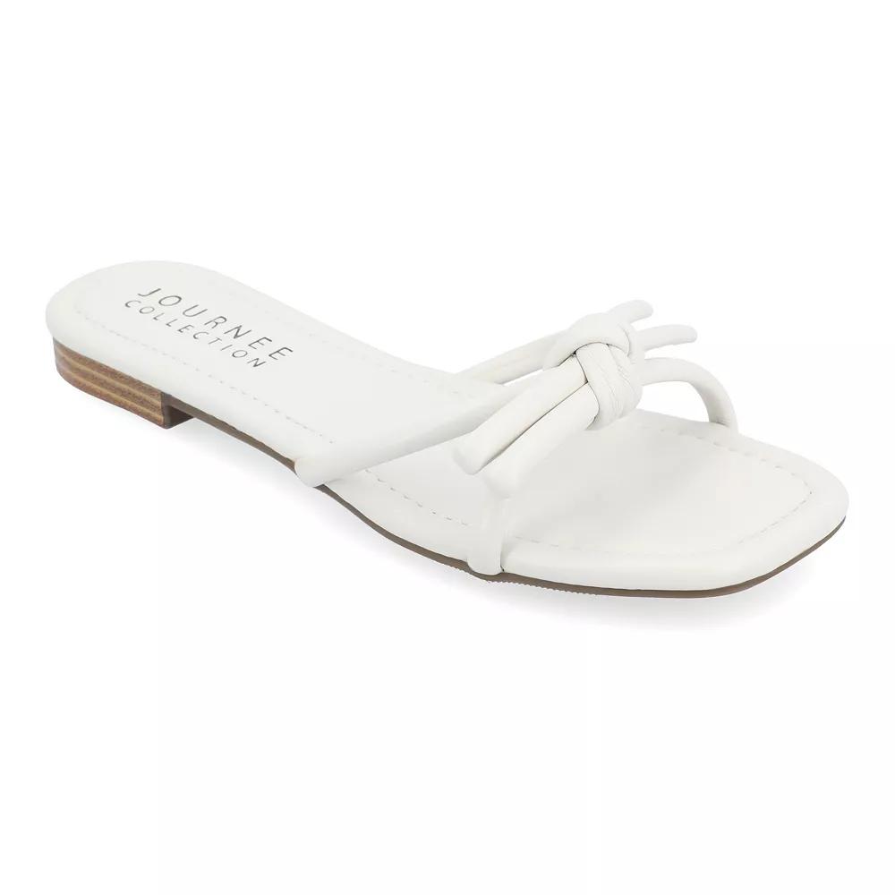 Perfectfor warm-weather nights, youll love these womens Journee Collection Tru Comfort Soma sandals.Click this FOOTWEAR GUIDE to find the perfect fit and more! Perfectfor warm-weather nights, youll love these womens Journee Collection Tru Comfort Soma sandals.Click this FOOTWEAR GUIDE to find the perfect fit and more! SHOE FEATURES Single band & bow detail Low stacked block heelSHOE CONSTRUCTION Faux leather upper Polyurethane lining Manmade outsoleSHOE DETAILS Open toe Slip-on .5-in. heel height Spot clean Imported Size: 8.5. Color: Natural. Gender: female. Age Group: adult. Material: Synthetic.