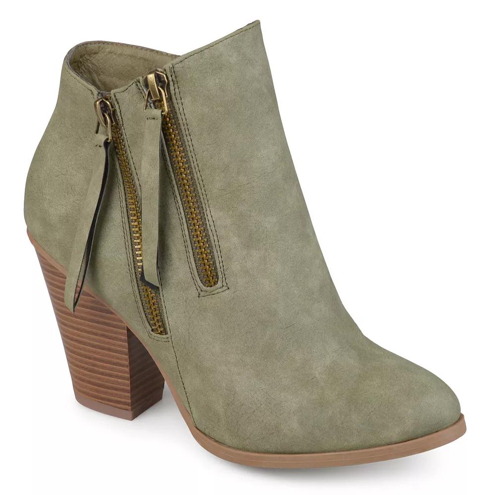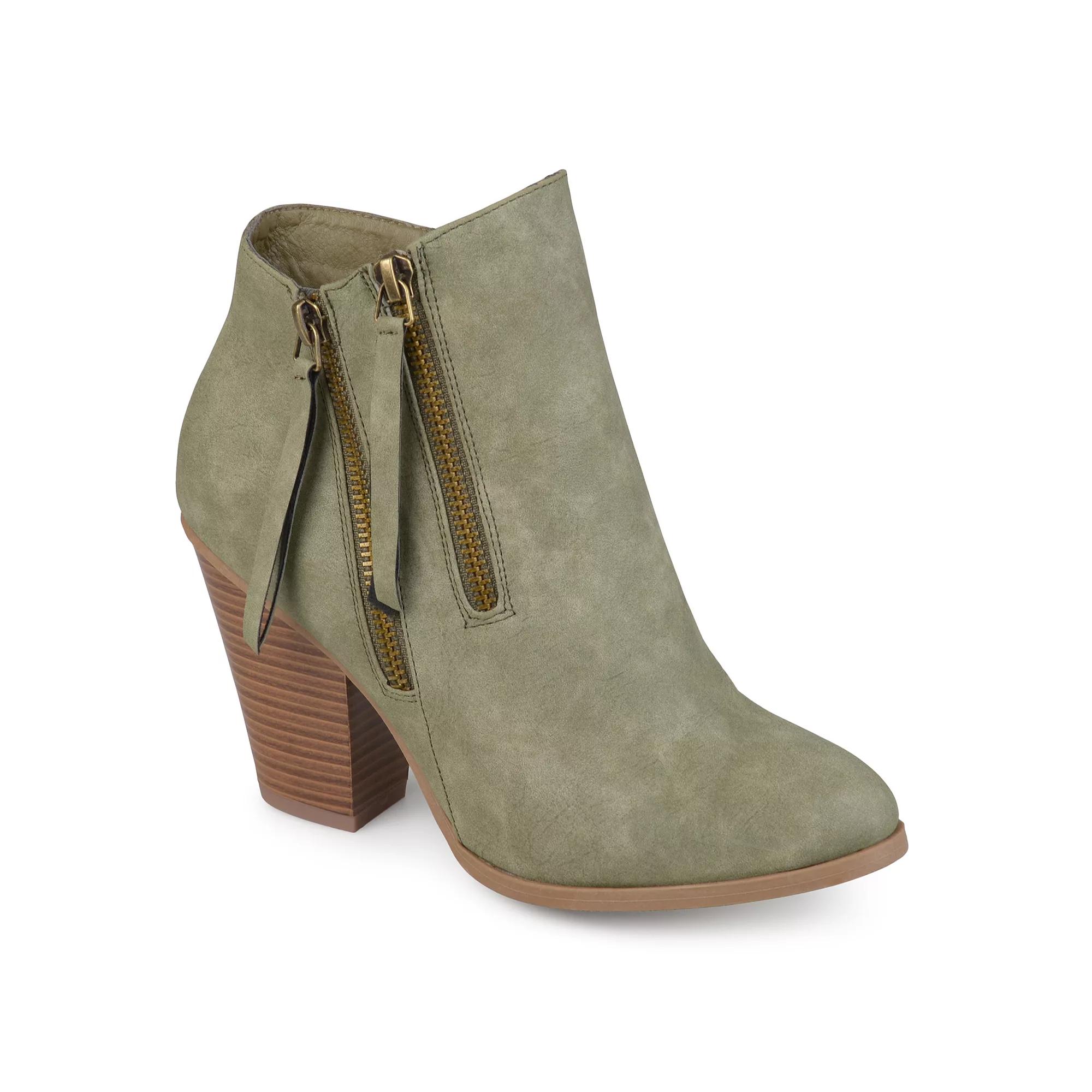 Show off chic style in these Vally double zipper ankle boots by Journee. Click this FOOTWEAR GUIDE to find the perfect fit and more! - https://www.kohls.com/feature/shoesizeguide.jsp. Watch the product video here. - https://media.kohlsimg.com/is/content/kohls/mp4/1708/KOHLSBootFitGuide_VDEO.mp4. BOOT FEATURES: Zipper accents. Block heel. BOOT CONSTRUCTION: Faux leather upper. Fabric lining. Manmade outsole. BOOT DETAILS: Round toe. Inside Zipper closure. Padded footbed. 3.5-in. heel. 0.83-in. platform. 7-in. shaft. 9-in. circumference. Size: 8 Wide. Color: Olive. Gender: female. Age Group: adult. Material: SYNTHETIC.