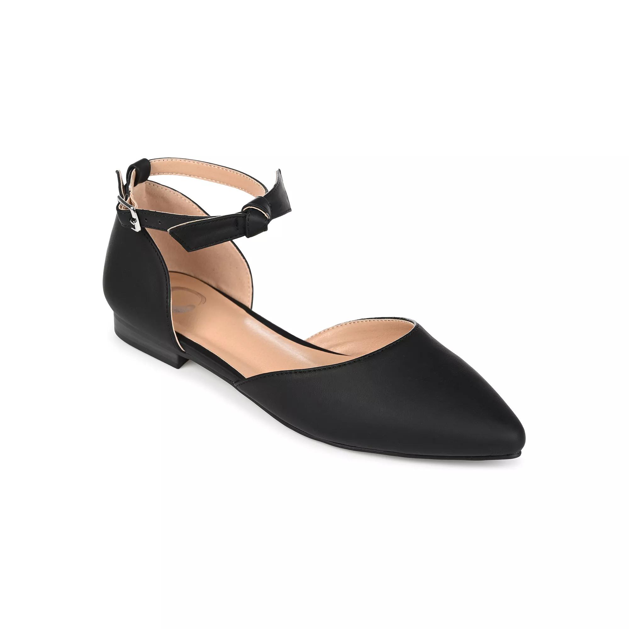 These Journee Vielo women's flats offer cute and chic style. Click this FOOTWEAR GUIDE to find the perfect fit and more! - https://www.kohls.com/feature/shoesizeguide.jsp. SHOE FEATURES: Bow detail upper, Ankle buckle closure for a secure fit. SHOE CONSTRUCTION: Faux leather upper, Polyurethane lining, Manmade outsole. SHOE DETAILS: Almond toe, Buckle closure, Polyurethane footbed. Size: 7 Wide. Color: Black. Gender: female. Age Group: adult. Material: SYNTHETIC.