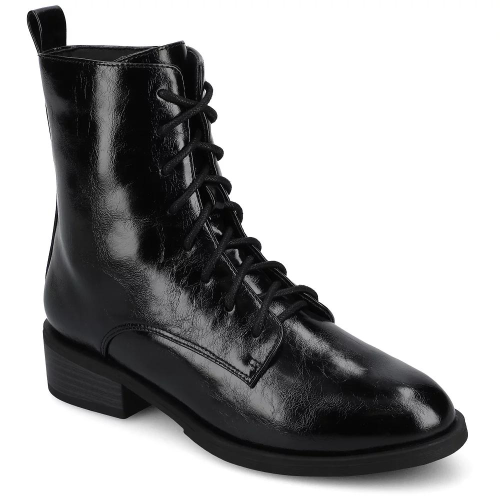 Meet Vienna — the combat boot that knows the difference between trying too hard and nailing it effortlessly. Classic lace-up details and soft faux leather uppers bring the edge, while that convenient side zipper whispers "I'm stylish AND I have places to be."The almond toe keeps things refined (because you're not here to compromise), and the stacked block heel gives you that perfect lift without the drama. But here's where Vienna becomes your secret weapon: our cushioned footbed with the Journee Comfort System turns every step into your personal power move.Whether you're commanding Monday meetings or claiming your weekend freedom, Vienna doesn't just complete your outfit — it elevates your entire energy. From coffee runs that turn into compliment sessions to dinner dates where you actually walk there (and back), these boots move with your life, not against it.Because when your feet feel this supported and your style looks this intentional, confidence stops being an accessory and starts being your superpower. Vienna gets it, and more importantly, Vienna gets you there. Click this FOOTWEAR GUIDE to find the perfect fit and more! - https://www.kohls.com/feature/shoesizeguide.jsp. BOOT FEATURES: Classic design, Side zipper allows for easy on/off, Lug sole. BOOT CONSTRUCTION: Faux leather upper, Fabric lining, Manmade outsole. BOOT DETAILS: Almond toe, Zipper, lace-up closure, Padded footbed, 1.5-in. heel, 0.5-in. platform, 5.5-in. shaft, 10-in. circumference. Size: 6.5. Color: Crinkle Black. Gender: female. Age Group: adult.