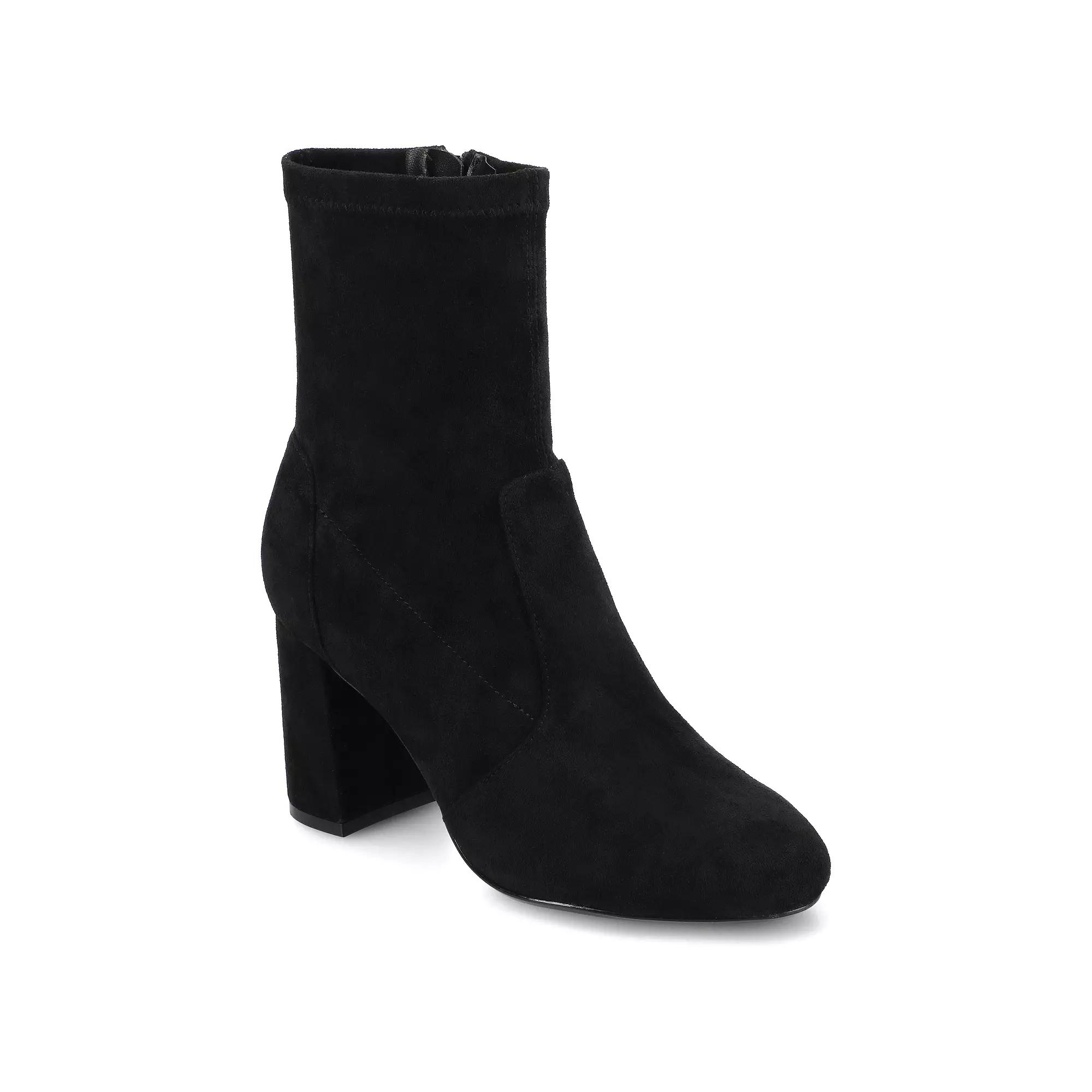 Experience effortless style with Journee's sleek ankle boots, designed with a luxurious upper and a stretch shaft for a comfortable, easy fit. The chic almond toe and Journee Comfort System insole ensure you stay both fashionable and comfortable all day long, making these the perfect addition to any wardrobe. Click this FOOTWEAR GUIDE to find the perfect fit and more! - https://www.kohls.com/feature/shoesizeguide.jsp. FEATURES: Stretch upper provides easy entry, Journee comfort system insole. DETAILS: Man-made upper, lining, midsole & outsole, Almond toe, Pull-on, Foam footbed, 3-in. heel, 9-in. shaft, 6-in. circumference, Spot clean, Imported. Size: 9.5. Color: Black. Gender: female. Age Group: adult. Material: SYNTHETIC.