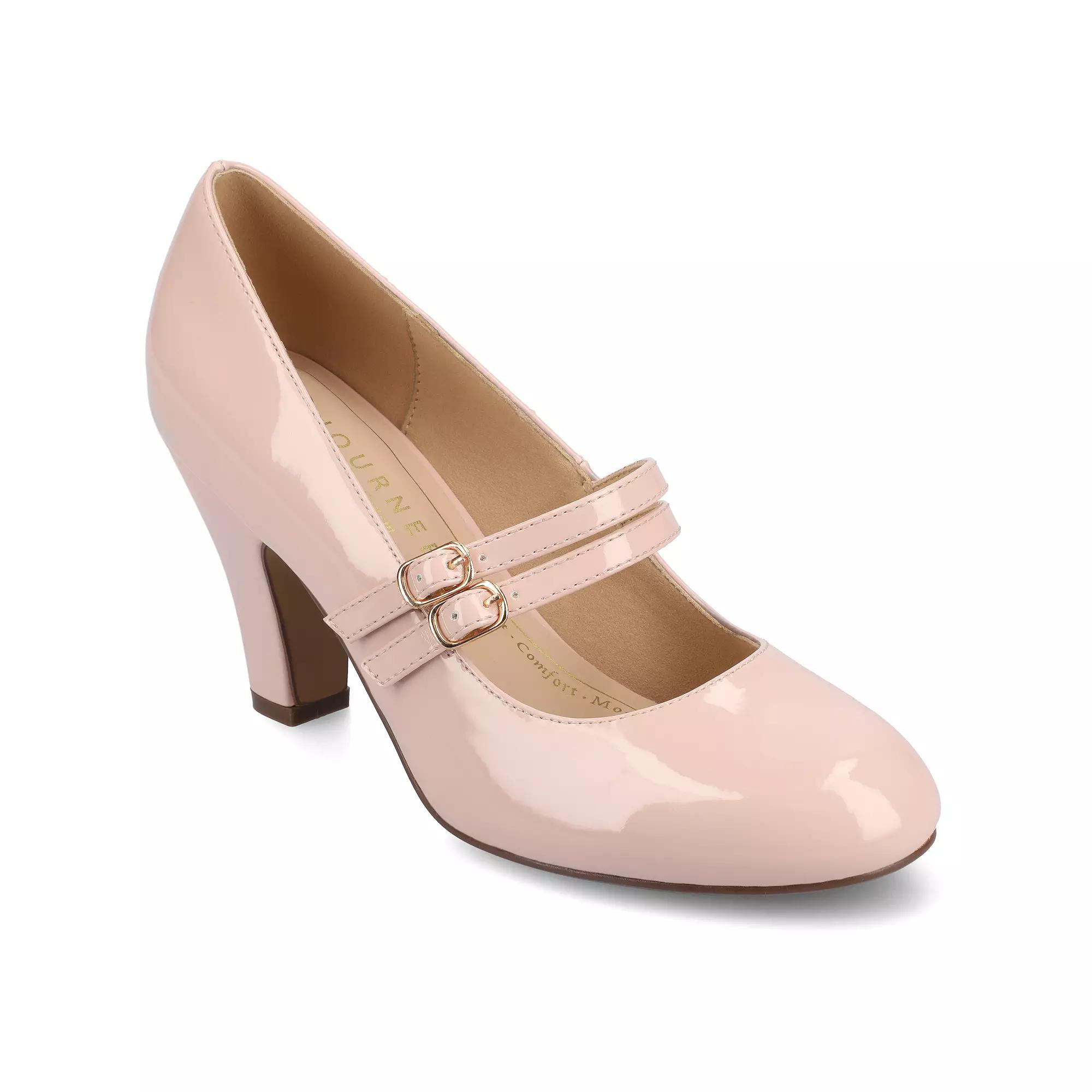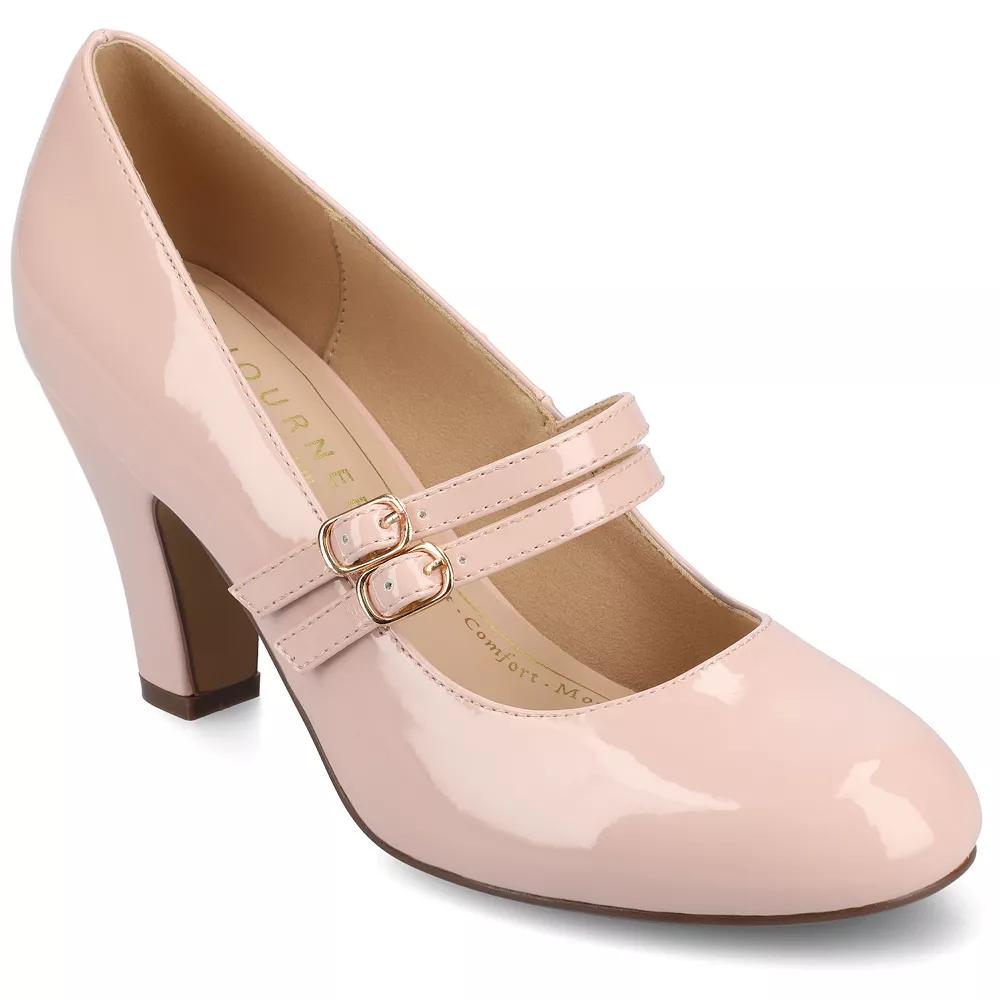 Meet your new favorite Mary Janes — the ones that turn heads and keep feet happy all night long. Premium faux leather meets those perfect double straps and sweet buckle details that somehow make every outfit look more intentional.Here's the thing about our pumps: they're basically mood boosters with heels. Dance until last call, then walk home like you're floating on clouds — because comfort this good feels a little like magic.The Journee Comfort System works behind the scenes so you can focus on being the main character of your own story. Cushioned insoles and thoughtful construction mean your feet stay as fresh as your look, from boardroom presentations to birthday dinners to those spontaneous nights that turn into the best stories.These aren't just shoes that complete your outfit — they're the secret weapon that makes you feel like you can conquer anything in heels. Sweet enough for brunch dates, bold enough for date nights, and comfortable enough to forget you're even wearing heels.Because when your shoes feel this good, everything else just falls into place. Click this FOOTWEAR GUIDE to find the perfect fit and more! - https://www.kohls.com/feature/shoesizeguide.jsp. SHOES FEATURES: Double-buckle straps. SHOE CONSTRUCTION: Faux leather, Rubber outsole. SHOE DETAILS: Round toe, Buckle closure, Lightly padded footbed, 3.3-in. heel, Spot clean. Size: 12 Wide. Color: Blush. Gender: female. Age Group: adult. Material: SYNTHETIC.