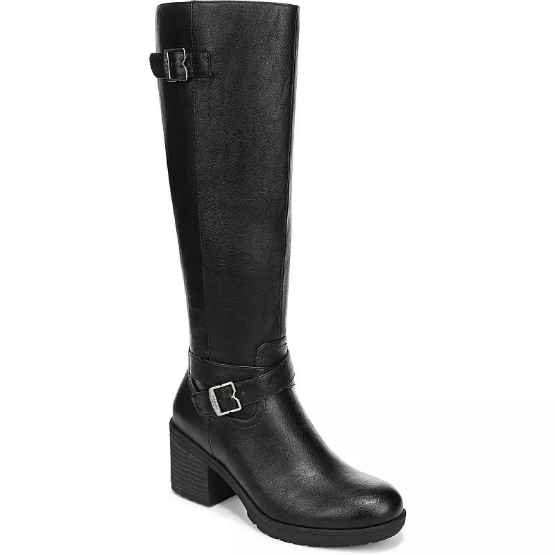 Feel good boots with flair to elevate any look. Chic detailing and reliable comfort takes these Dr. Scholl's Prairie tall women's boots to ‘best walking shoes’ status. Click this FOOTWEAR GUIDE to find the perfect fit and more! - https://www.kohls.com/feature/shoesizeguide.jsp. FEATURES: Knee high boots with strap and buckle details, a stacked heel, and lug outsole, Faux leather with stretch fabric back panel made from recycled plastic bottles, Linings and topcloth partially made from recycled plastic bottles, recycled toe box and heel counter, Side zipper for easy on/off and stretch back panel for extra flexibility, Anti-microbial, anti-odor Insole Technology with cushioning, comfort, & support, Insoles crafted with cushy, algae-infused BLOOM® foam for cleaner air and water, Lightweight, flexible construction moves with you. DETAILS: Synthetic upper, Fabric lining, Manmade outsole, Contains 100% RPET, Round toe, Zipper closure, Foam footbed, Multi-directional outsole, 2.75-in. heel height, 14.76-in. shaft height, 14.96-in. shaft circumference, Spot clean. RESPONSIBLE Contains recycled polyester. The antimicrobial properties do not protect users or others against bacteria, viruses, germs, or other disease organisms. Size: 9.5 Wc. Color: Black. Gender: female. Age Group: adult.