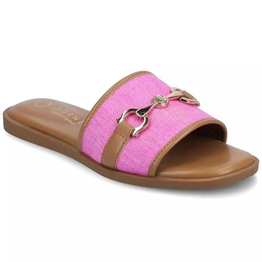 Comfortable and stylish, these women's sandals from Journee are perfect for warm, sunny days. Click this FOOTWEAR GUIDE to find the perfect fit and more! - https://www.kohls.com/feature/shoesizeguide.jsp. FEATURES: Slip-on for easy on and off, Open square toe. DETAILS: Synthetic upper, lining, midsole and outsole, Open toe, Slip-on, Polyurethane footbed, Spot clean, Imported. Size: 12 Wide. Color: Fuschia Raffia. Gender: female. Age Group: adult.