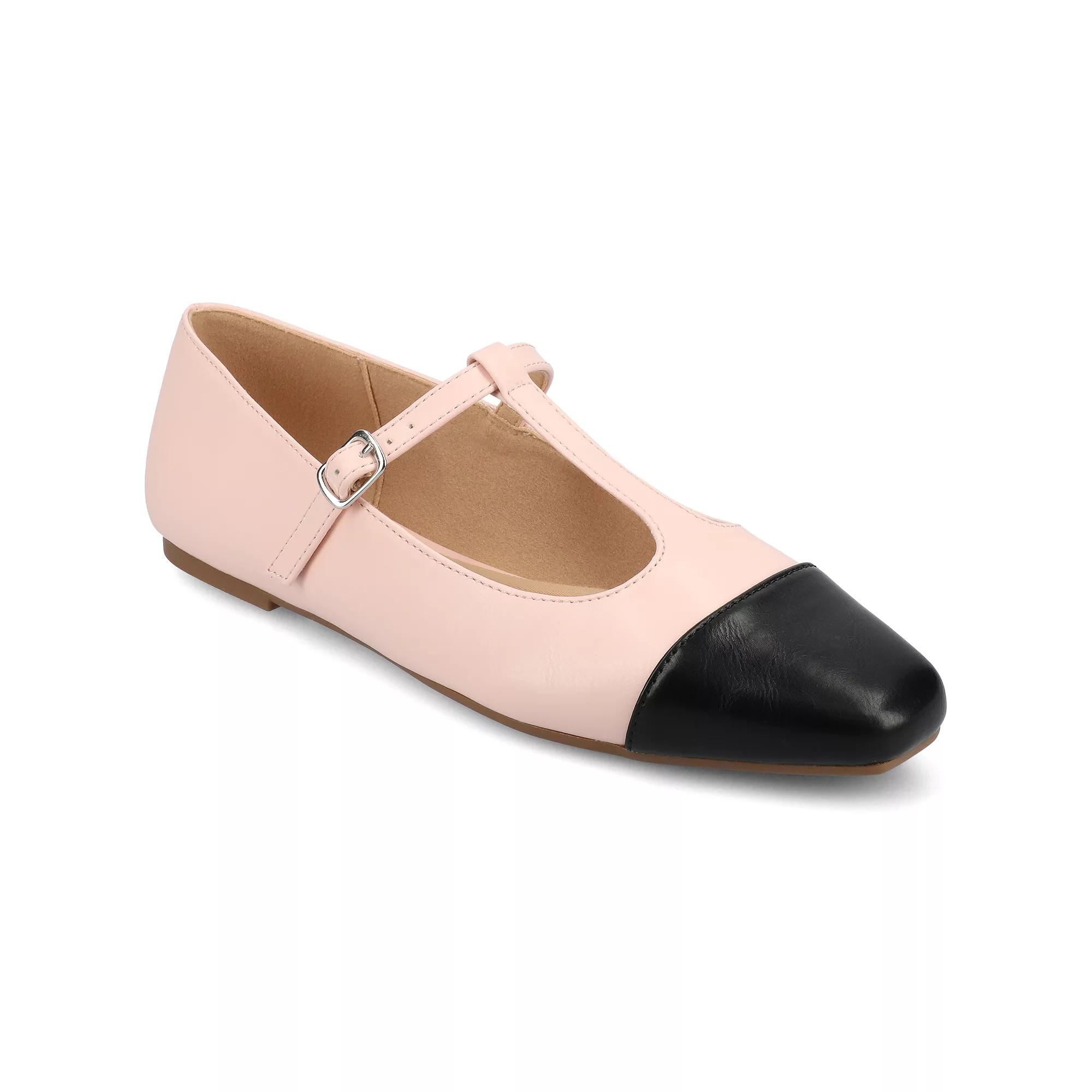 Fashion, comfort and style combine on these T-strap Mary Jane dress flats from Journee. Click this FOOTWEAR GUIDE to find the perfect fit and more! - https://www.kohls.com/feature/shoesizeguide.jsp. FEATURES: T-strap and buckle, Mary Jane styling. DETAILS: Synthetic upper, lining, midole, and outsole, Square toe, Buckle closure, Polyurethane footbed, Spot clean, Imported. Size: 6. Color: Pink. Gender: female. Age Group: adult. Material: FAUX LEATHER.