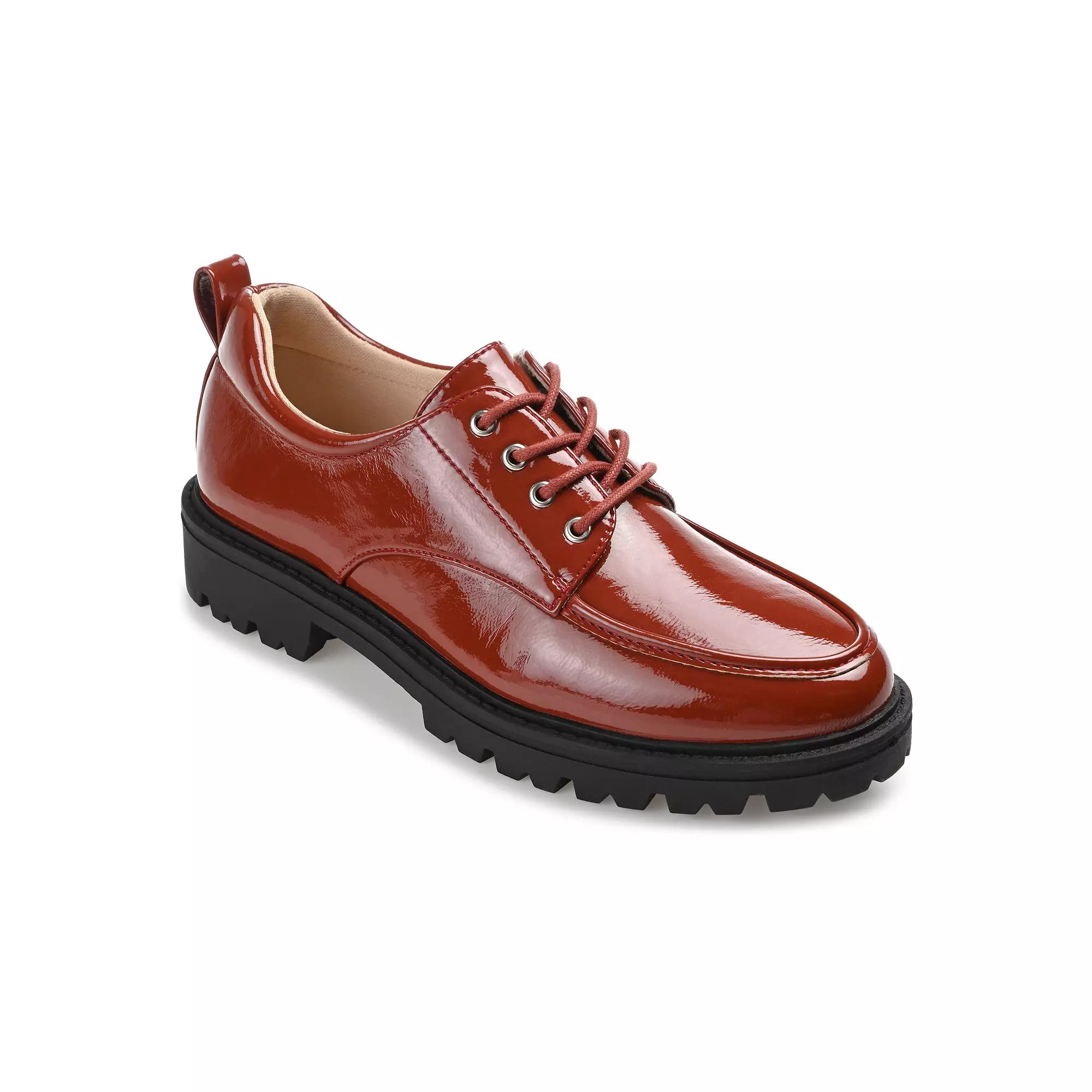 Youll love slipping into these Journee Collection Womens Tru Comfort Foam Zina Flat.Click this FOOTWEAR GUIDE to find the perfect fit and more! Youll love slipping into these Journee Collection Womens Tru Comfort Foam Zina Flat.Click this FOOTWEAR GUIDE to find the perfect fit and more! SHOE FEATURES Vegan Leather Tru Comfort Foam Soft Patent Vegan Leather Lug Outsole Oxford StyleSHOE CONSTRUCTION Manmade (PU) outsole Manmade (PU) lining Faux leather upperSHOE DETAILS Spot clean Almond toe Foam footbed Lace-up closure Size: 7. Color: Dark Red. Gender: female. Age Group: adult.