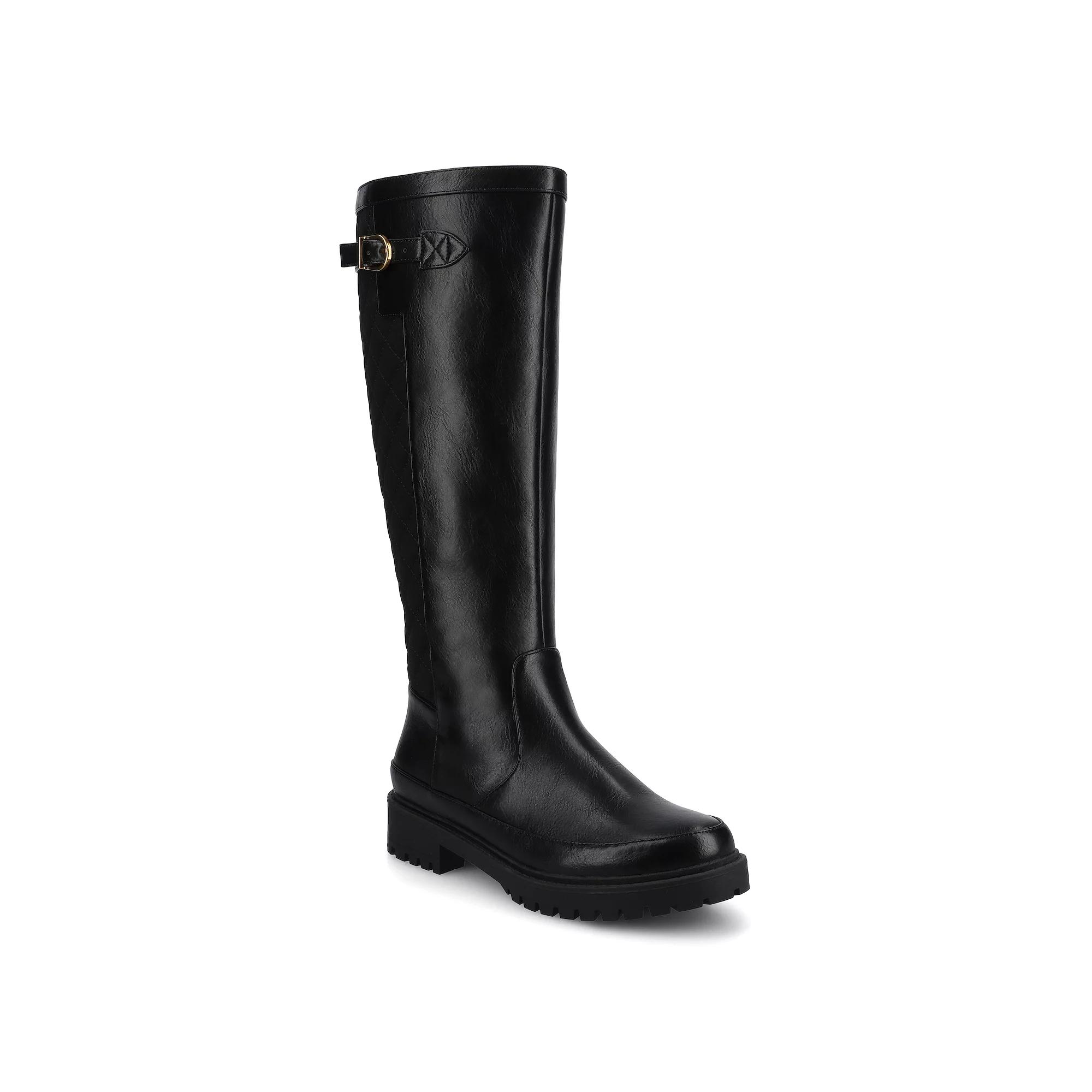 Step into effortless style with Journee's chic knee-high boots, designed to complement any outfit. Featuring a cozy block heel and a convenient inside zipper, these boots seamlessly combine comfort and flair with their trendy quilted shaft and almond toe. WC = Medium Width, Wide Calf. M XWC = Medium Width, Extra Wide Calf. W = Wide Width, Regular Calf. W WC = Wide Width, Wide Calf. W XWC = Wide Width, Extra Wide Calf. Click this FOOTWEAR GUIDE to find the perfect fit and more! - https://www.kohls.com/feature/shoesizeguide.jsp. FEATURES: Comfortable insole. Inside zipper for easy entry. DETAILS: Man-made lining, upper, & midsole, Rubber outsole, Almond toe, Zipper closure, Foam footbed, 1.5-in. heel, 1-in. platform height, 15-in. shaft height, 14.5-in. regular shaft circumerence. 16.5-in. WC shaft circumference. , Spot clean, Imported. Size: 9. Color: Black. Gender: female. Age Group: adult. Material: SYNTHETIC.