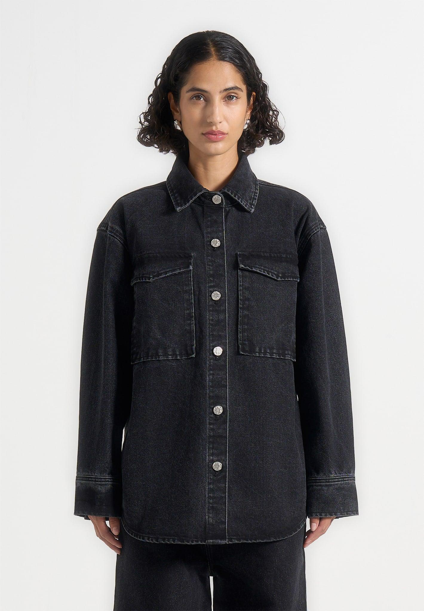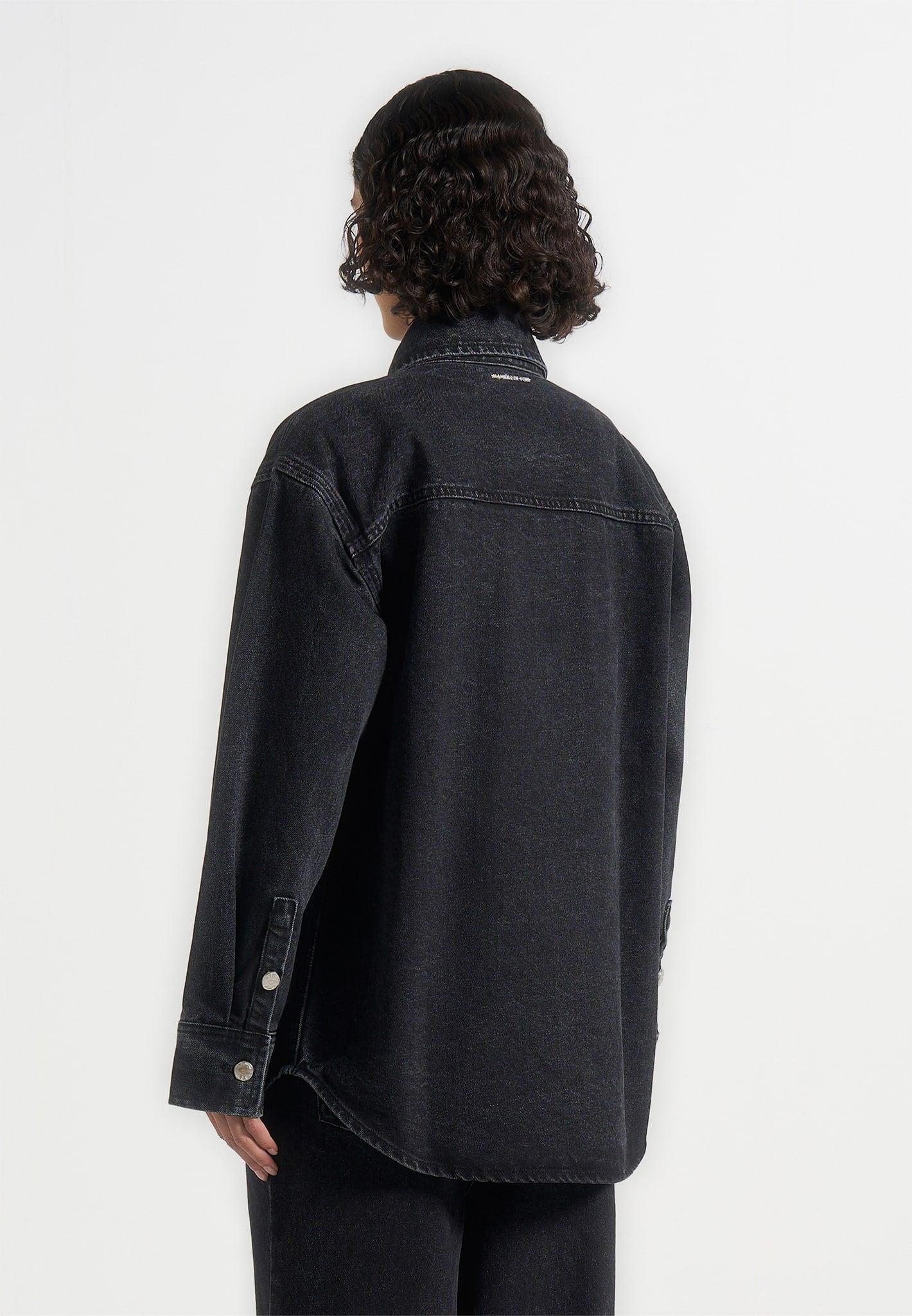 Cut from durable denim for a timeless finish, this piece combines everyday functionality with refined detailing. Tonal stitching defines the silhouette, while functional front pockets add practicality. Statement feature buttons complete the design with a bold, elevated accent. Crafted from denim for a timeless, durable finish Oversized silhouette for a modern statement Tonal stitching for added detail Functional front pockets for everyday practicality Statement feature button for a bold, refined accent Silver Manière De Voir branding to centre back