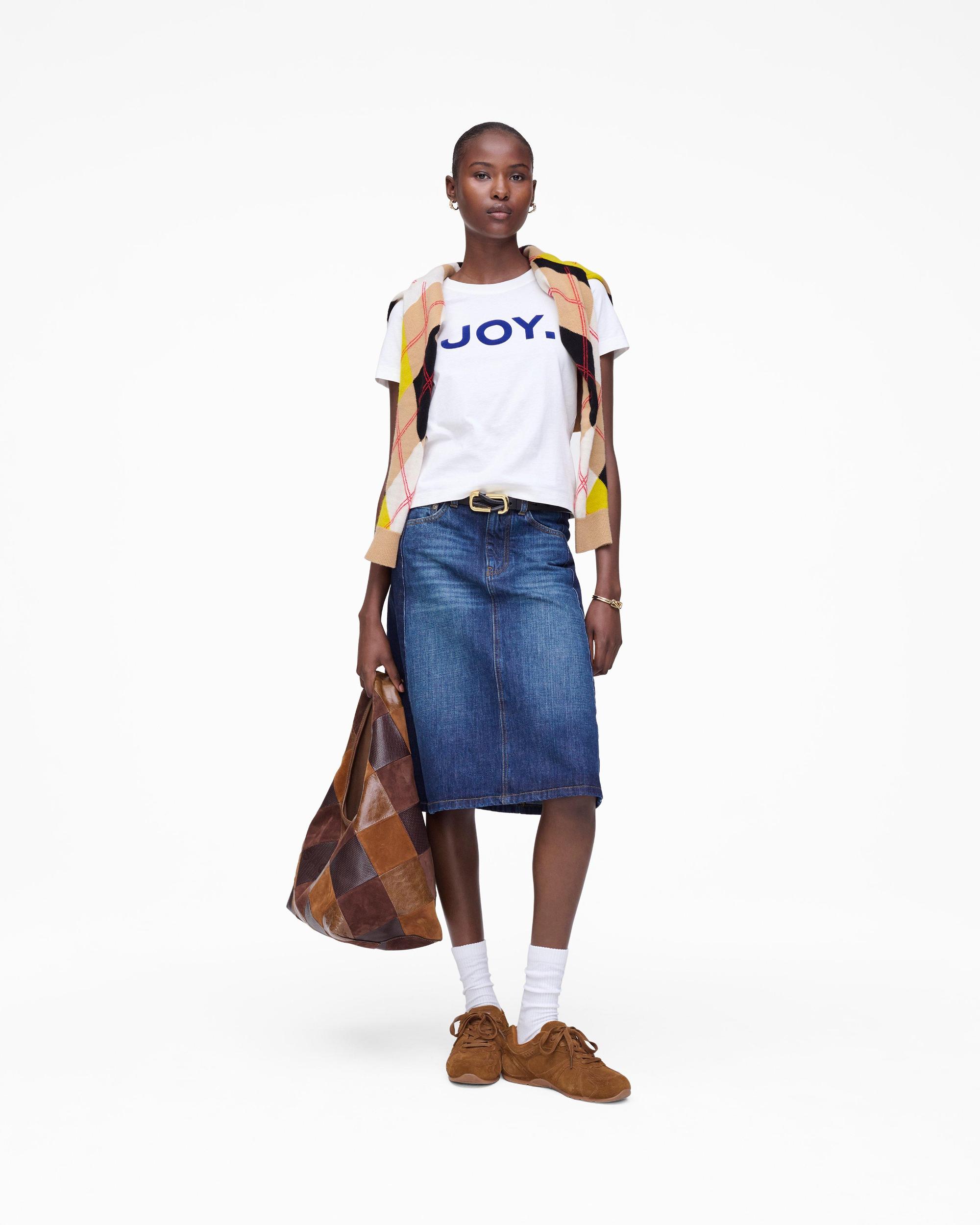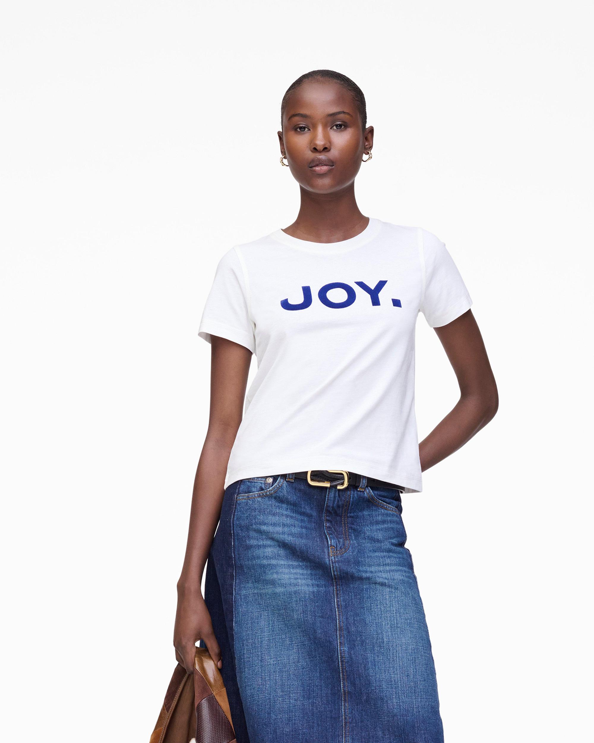 Made from lightweight stretch jersey and channeling our seasonal JOY theme, this slim tee features a bold “JOY.” graphic at the front, and a ribbed neck trim for a refined finish. At the back, Marc’s personal show notes are screen-printed, offering a behind-the-scene glimpse into the collection’s spirit. Shop Marc Jacobs Joy. Slim Tee