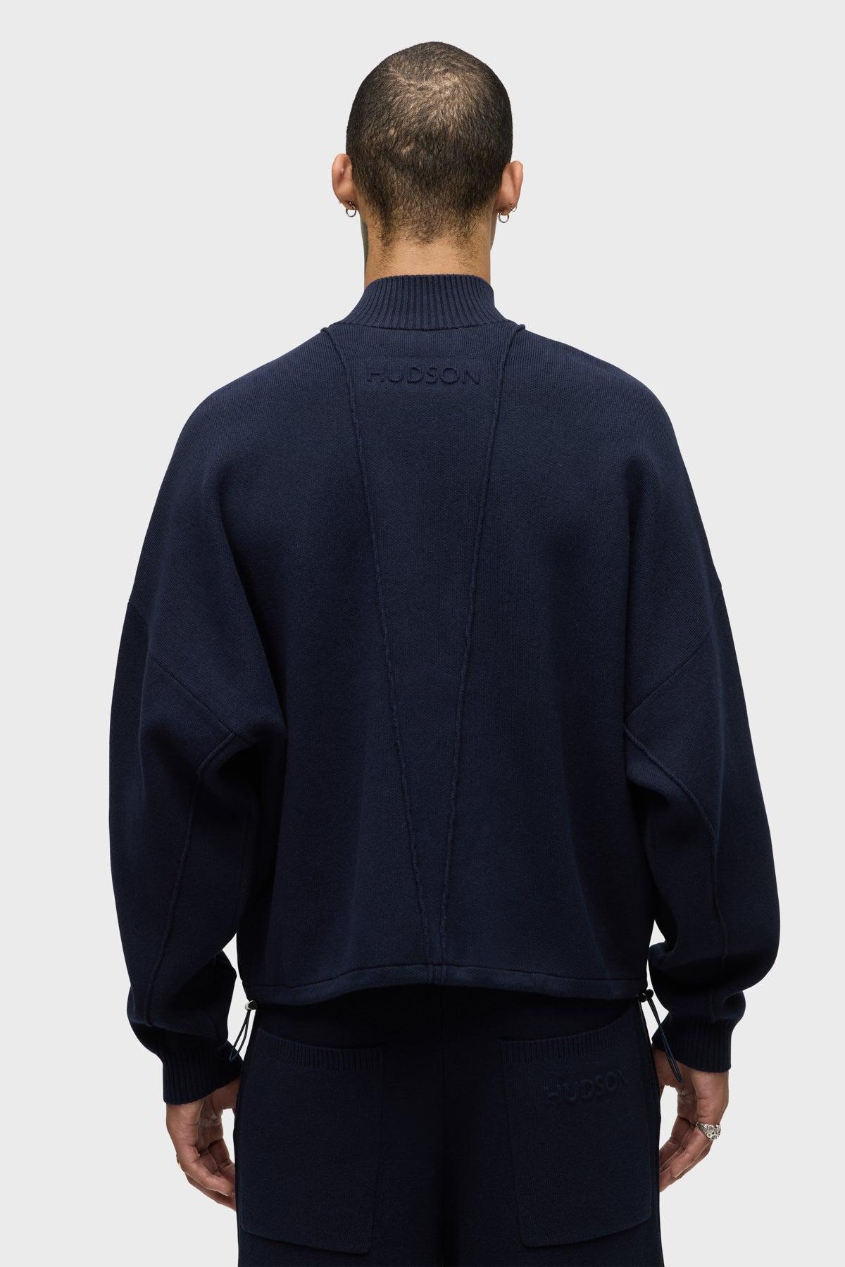 Description Designed in collaboration with our Creative Architect Brandon Williams, the Jrue Knit Pant is made from a soft, cotton-cashmere blend with an oversized fit. The double-knit is drop shoulders, ribbed funnel neckline and bungee drawcord at the the hem. Embossed Hudson logo at the back yoke and embossed shield at the chest complete the look. Pair with the Jrue Knit Pant to wear as a set. Product Details Body Length: 25.25", Chest: 56", Sleeve Length: 20"Model Height 5'10"Model wearing size MMeasurements based on size M Fit & Care Content: 95% Cotton, 5% CashmereMachine wash cold with like colorsDo not bleachTumble dry low or hang to dry
