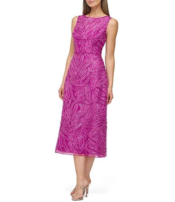 JS Collections Capri V-Back Sleeve Sequin Embroidered Soutache Fit & Flare Midi Dress