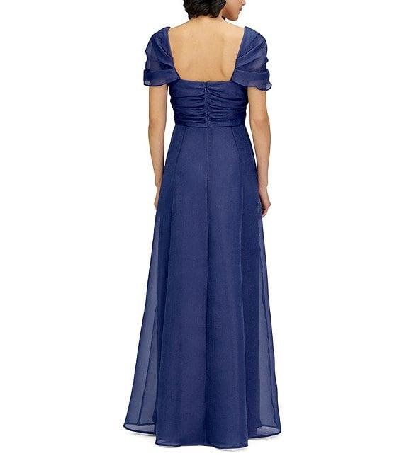 JS Collections Jane A-Line Square Neck Short Sleeve Textured Organza Gown