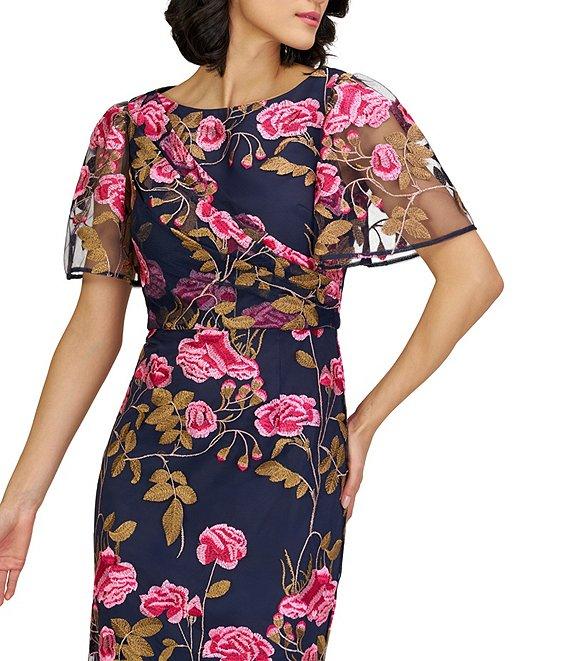 JS Collections Kristine Embroidered Mesh Floral Boat Neck Column Gown