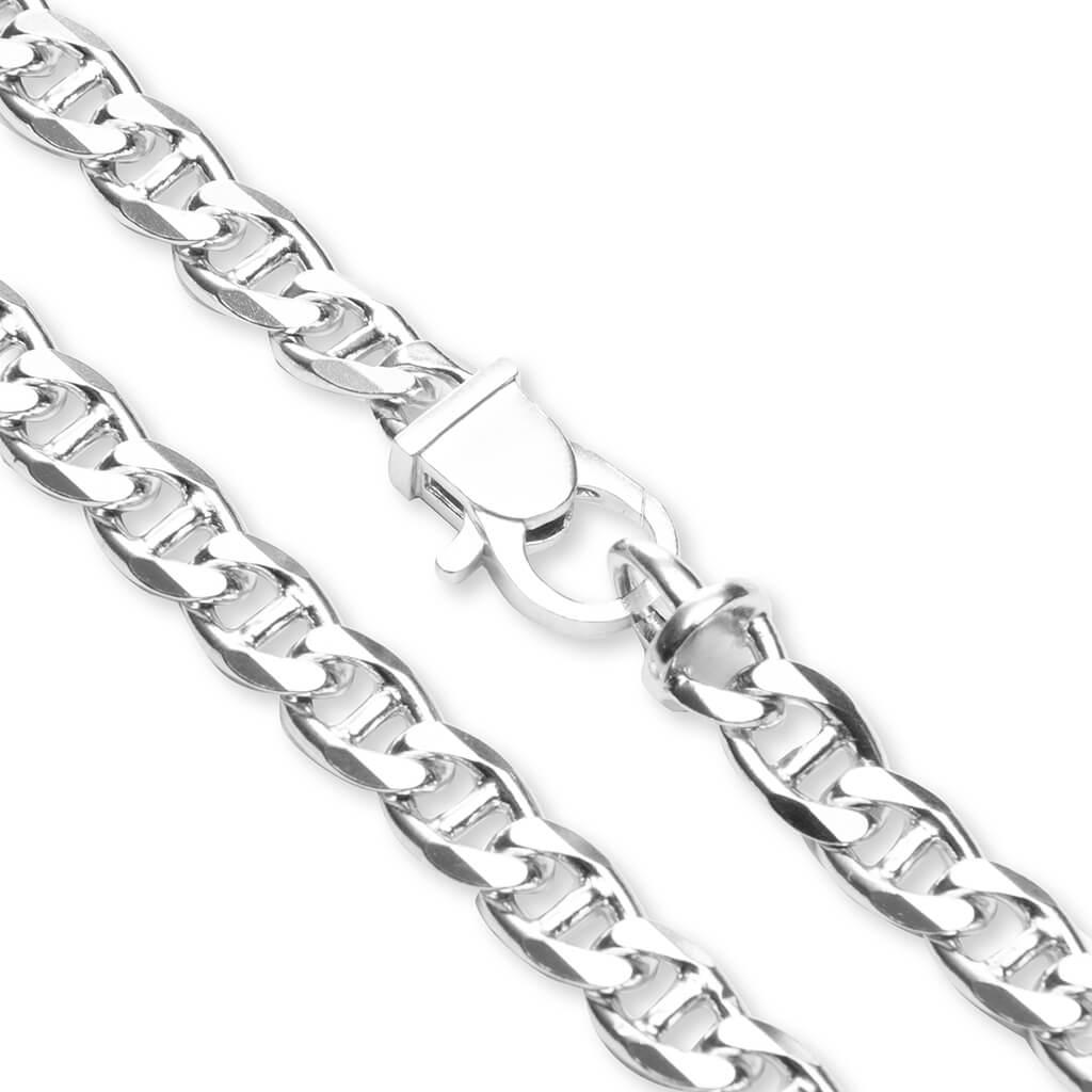The Jude Chain showcases timeless design and modern craftsmanship. Made from recycled 925 sterling silver, this chain is plated with white rhodium for a brilliant finish and enhanced durability. With a 5.7 mm width, it offers a versatile silhouette that pairs effortlessly with any look, making it a standout addition to your jewelry collection. Recycled 925 sterling silver White rhodium plating Chain width / 5.7 mm Style No: 100565