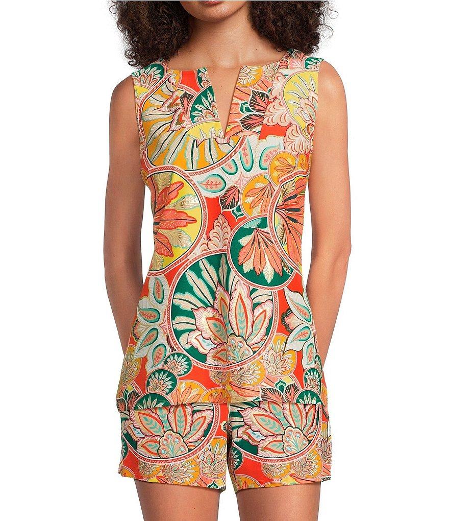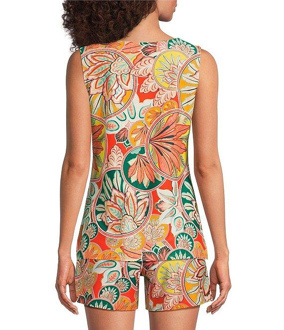 Jude Connally Alexa Gold Foiled Stained Glass Print Split V-Neck Sleeveless Tank Top