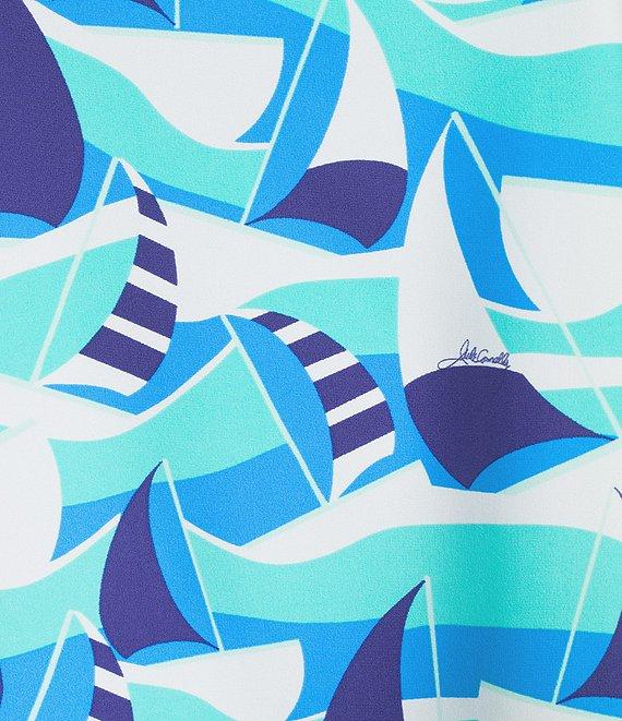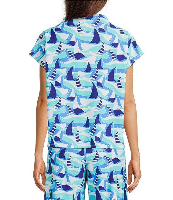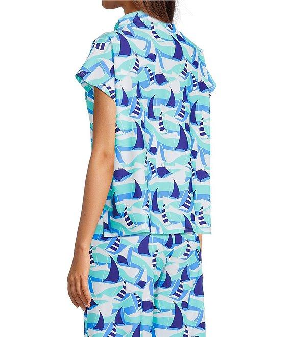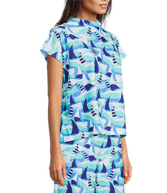 From Jude Connally, this top features: Ultralight Jude cloth woven fabrication Sail boat seaglass print Drape crew neckline Cap sleeves Side slits Pullover construction Approx. 23.375" length Nylon/spandex Machine wash/tumble dry Made in the USA.