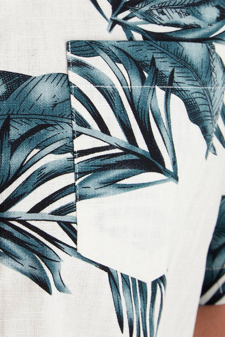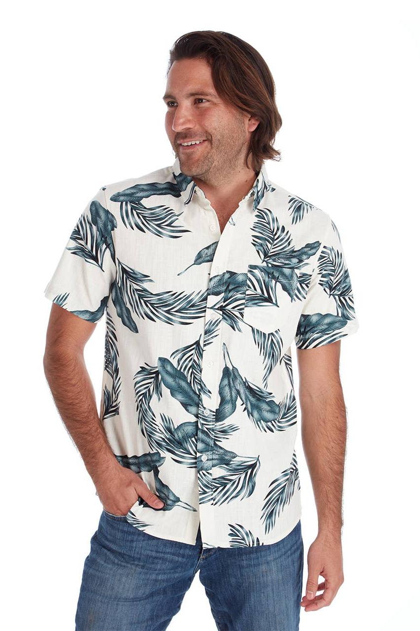 Short sleeve cotton slub all over print shirt 100% cotton This men's all-over print slub short sleeve button-up shirt is a bold and modern statement piece. Made from lightweight fabric, it's perfect for warmer weather and casual occasions. Ships in 1-3 business days