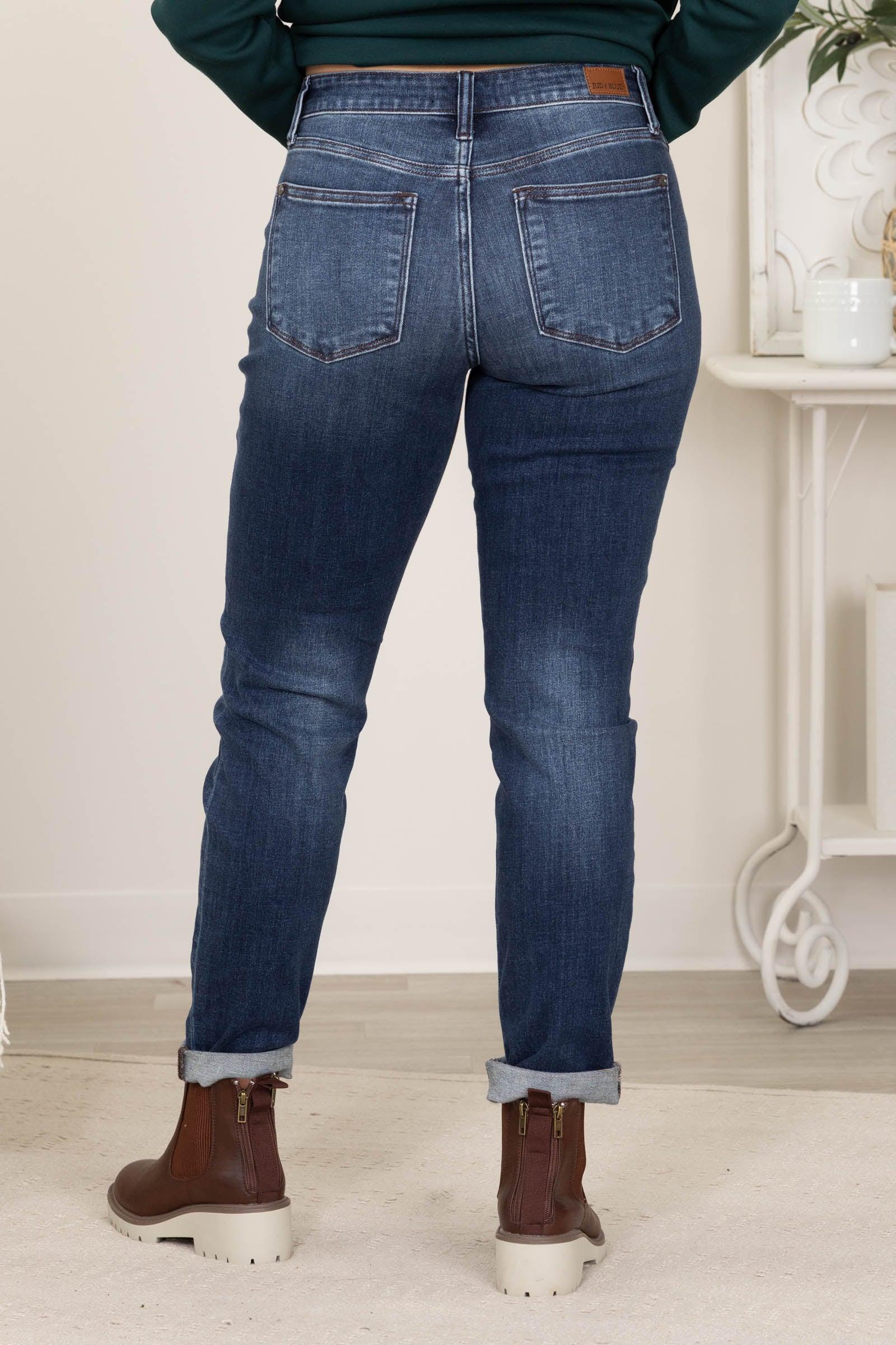 Product Details Color/Wash: Dark Wash Rise: High Rise Style: Slim Fit Brand: Judy Blue Material and Care 93% Cotton 6% Polyester 1% Spandex Machine Wash Cold Tumble Dry Low Size and Fit 0/24 Rise 9" Inseam 30.5" 1/25 Rise 9.5" Inseam 30.5" 3/26 Rise 9.5" Inseam 30.5" 5/27 Rise 9.5" Inseam 30.5" 7/28 Rise 10" Inseam 30.5" 9/29 Rise 10.5" Inseam 30.5" 11/30 Rise 10.5" Inseam 30.5" 13/31 Rise 10.5" Inseam 30.5" 15/32 Rise 11" Inseam 30.5" 14W=34 Rise 11.5" Inseam 30.5" 16W=36 Rise 11.5" Inseam 30.5" 18W=38 Rise 12" Inseam 30.5" 20W=40 Rise 12.5" Inseam 30.5" 22W=40 Rise 13" Inseam 30.5" Erica is 5’7” and wearing her true Judy Blue size 3/26