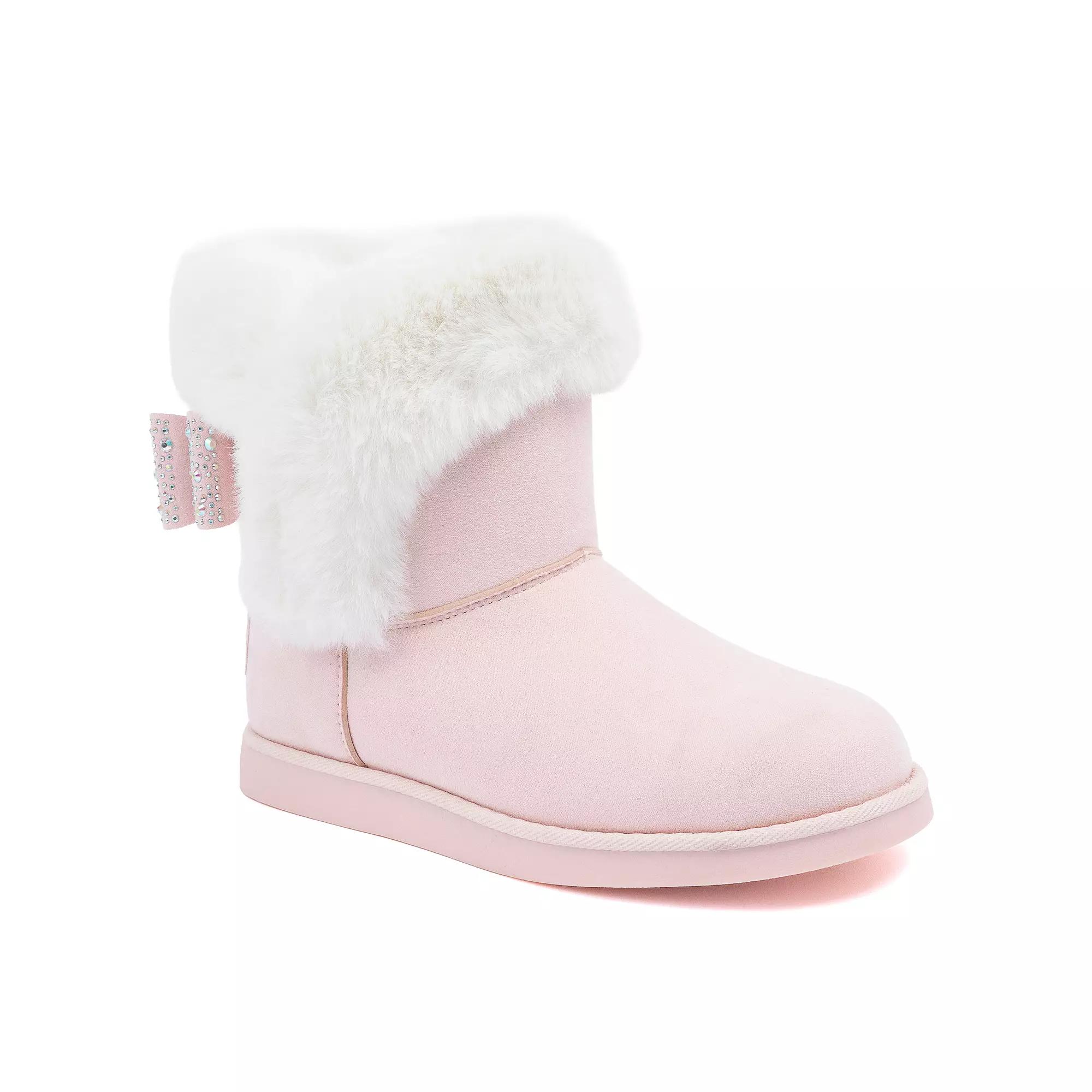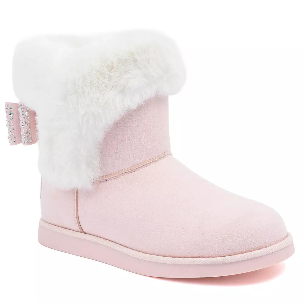 Step out in cozy style with these chic ankle boots that perfectly blend warmth and playful fashion. With a plush faux fur accent and a charming bow detail, you’ll be ready to strut through any chilly day while instantly elevating your look, all thanks to Juicy by Juicy Couture’s delightful design. Click this FOOTWEAR GUIDE to find the perfect fit and more! - https://www.kohls.com/feature/shoesizeguide.jsp. FEATURES: Flat insole has no built-in arch support, Pair with insert for added comfort. FIT & SIZE: Ankle boot shaft detail, Boot shaft height: 6.5-in., Boot shaft circumference: 14-in. DETAILS: Pull-on closure, Flex groove outsole, Round toe, Platform height: 0.5", Imported. MATERIAL & CARE: Manmade fabric upper and midsole, Manmade rubber outsole, Faux fur lining, Foam footbed, Product contains faux fur, Spot clean. Size: 9 Med. Color: Blush White. Gender: female. Age Group: adult. Material: SYNTHETIC.