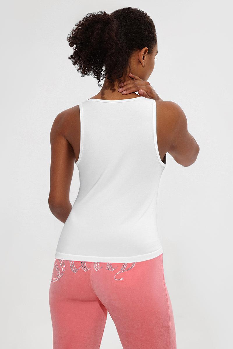 An elongated version of our best seller U-neck tank featuring bedazzled heart shaped cherries. It's the ideal layering piece to go under any Juicy tracksuit or as a stand-alone piece.