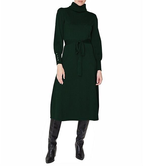Julia Jordan Knit Long Sleeve Belted Turtleneck Sheath Midi Dress