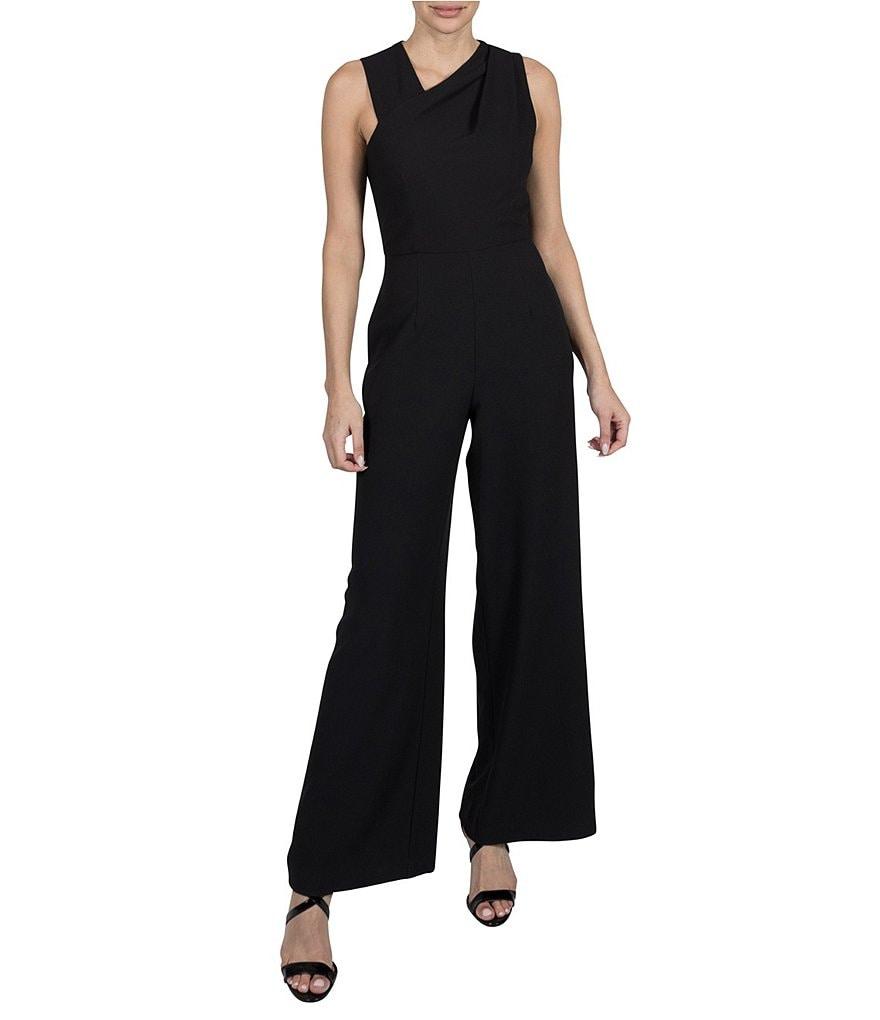 Julia Jordan Kors Crepe Asymmetrical Neck Sleeveless Pleated Shoulder Wide Leg Jumpsuit