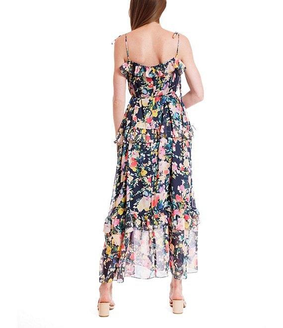 Julia Jordan Printed Chiffon Tie Shoulder Sleeveless Ruffle Tier A-Line Maxi Dress