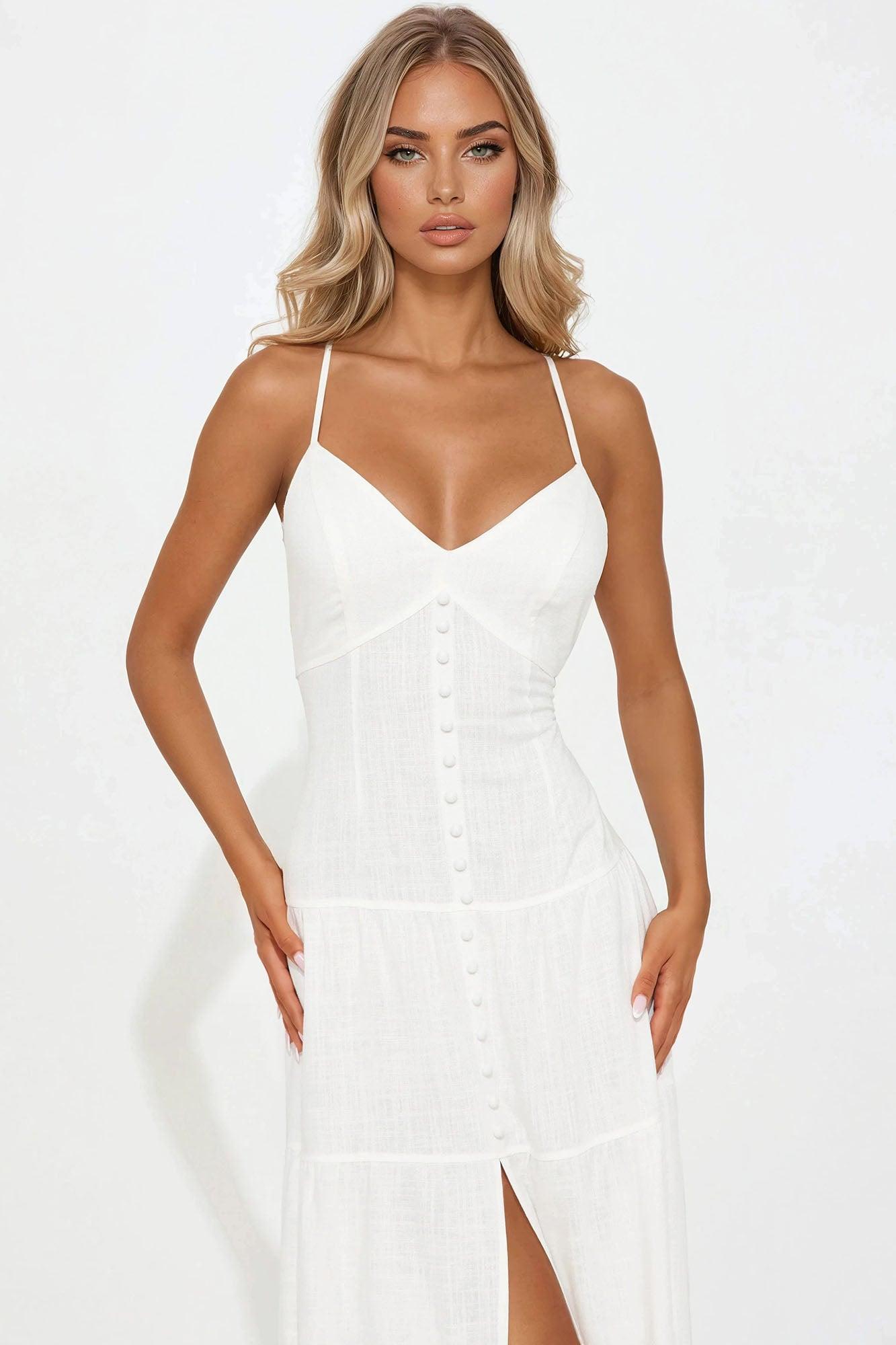 Julia Linen Spaghetti Strap Maxi Dress - White Female