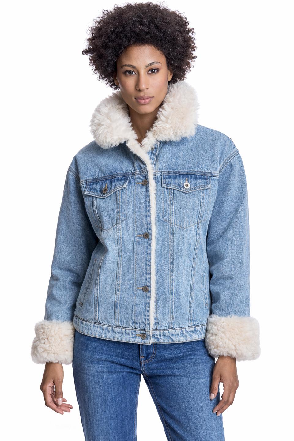 Julia & Stella by Maximilian Fur-Trimmed Denim Jacket-Maximilian