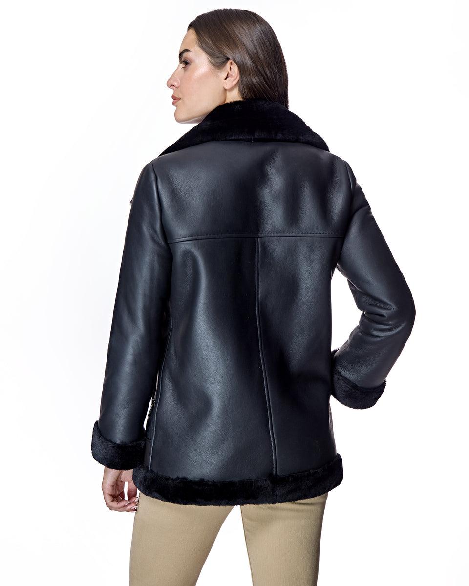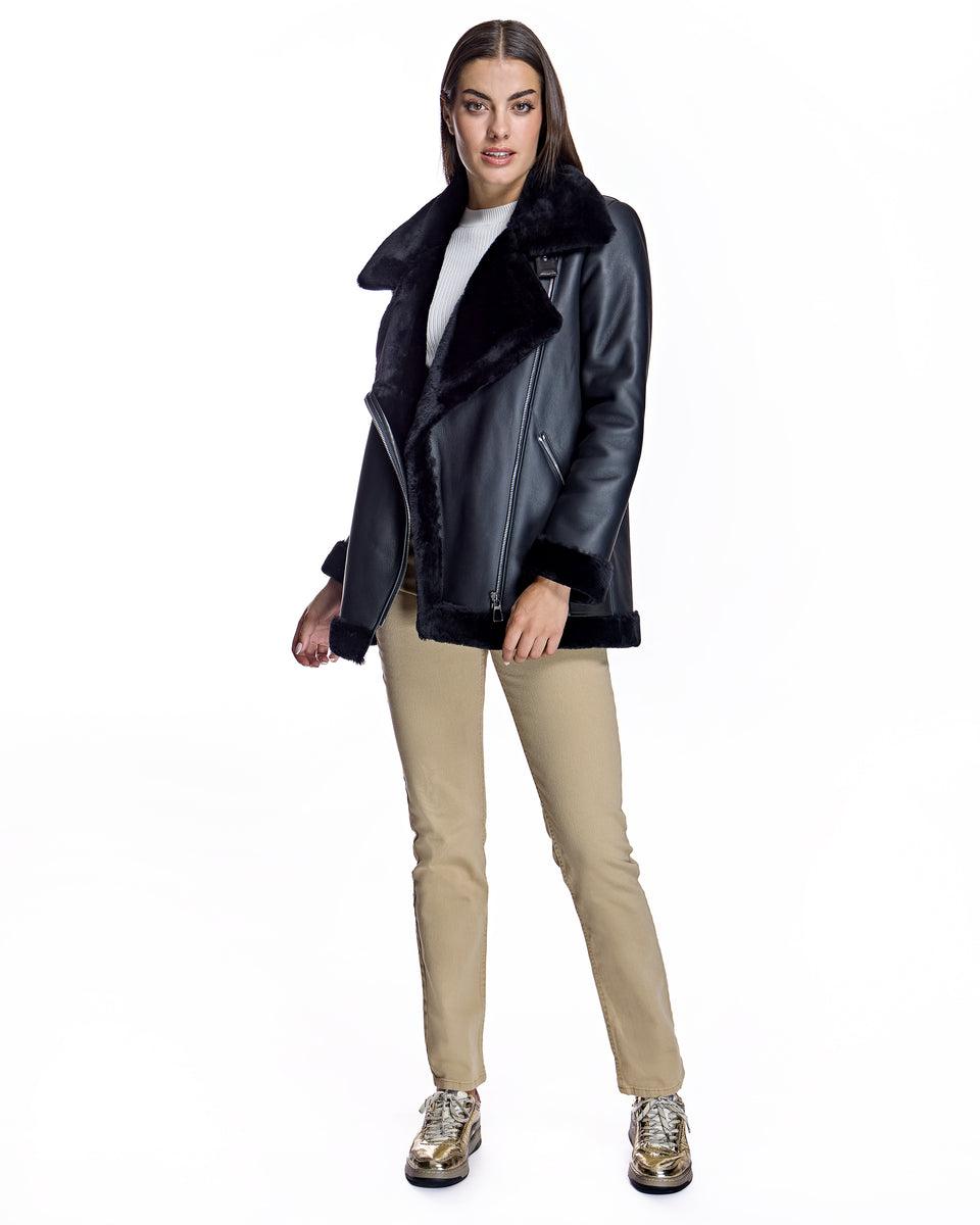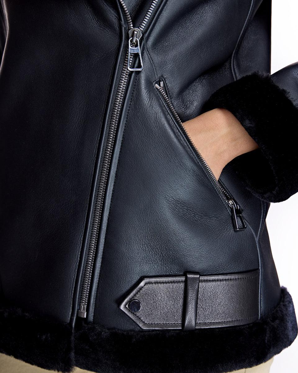 Long Shearling Lamb Moto Jacket with Leather Finish
