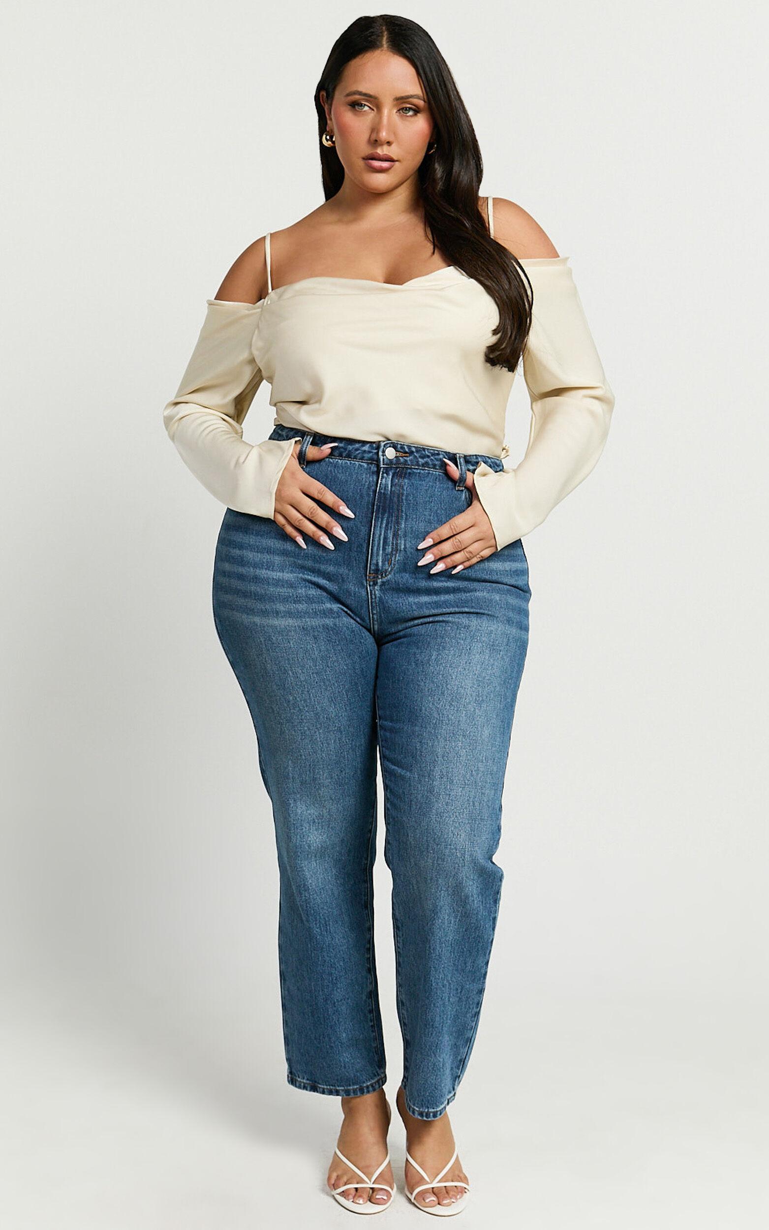 Julian Top - Off Shoulder Long Sleeve Cowl Neck Top in Ivory