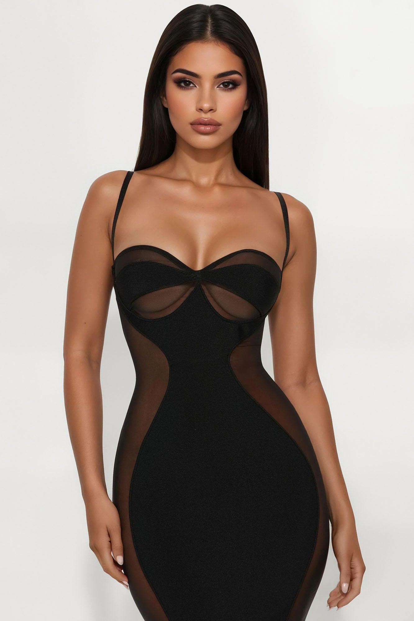 Juliane Sheer Mesh Bandage Midi Dress - Black Female