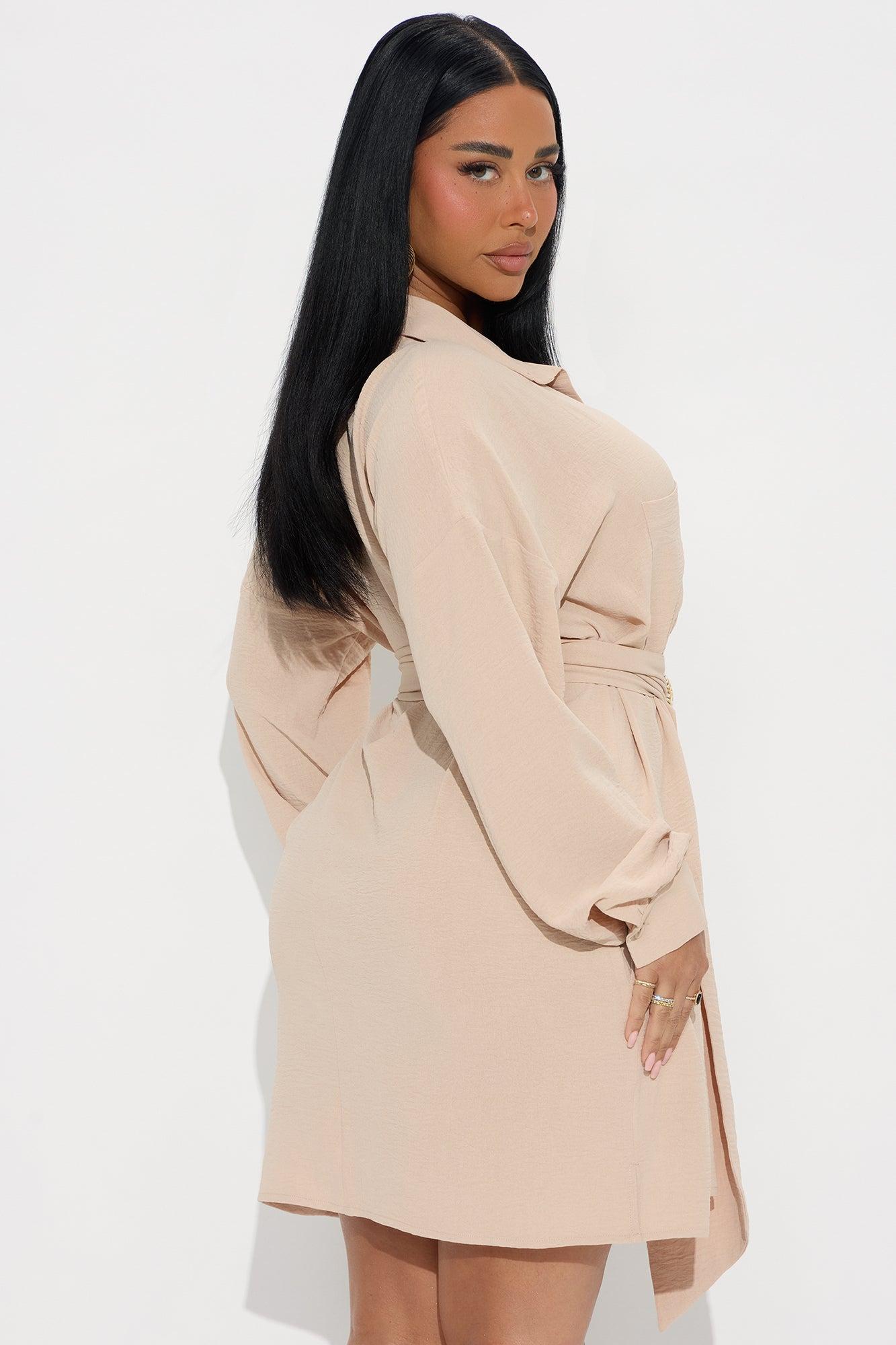 Julieta Belted Shirt Mini Dress - Beige Female