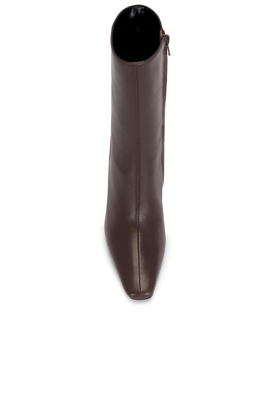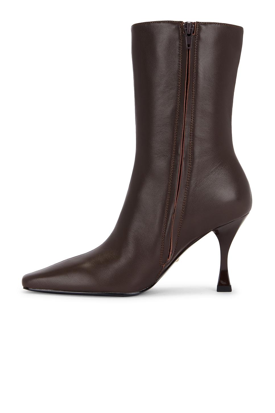 Leather upper with manmade sole. Inner side zip closure. Cushioned faux leather footbed and lining. Pointed square toe. Sculptural heel. Approx 90mm/ 3.5 inch heelApprox 205mm/ 8 inch shaftOpening measures approx 15.7" in circumference. Made in China. Revolve Style No. RAYE-WZ2972. Manufacturer Style No. RYSH1805 F24.