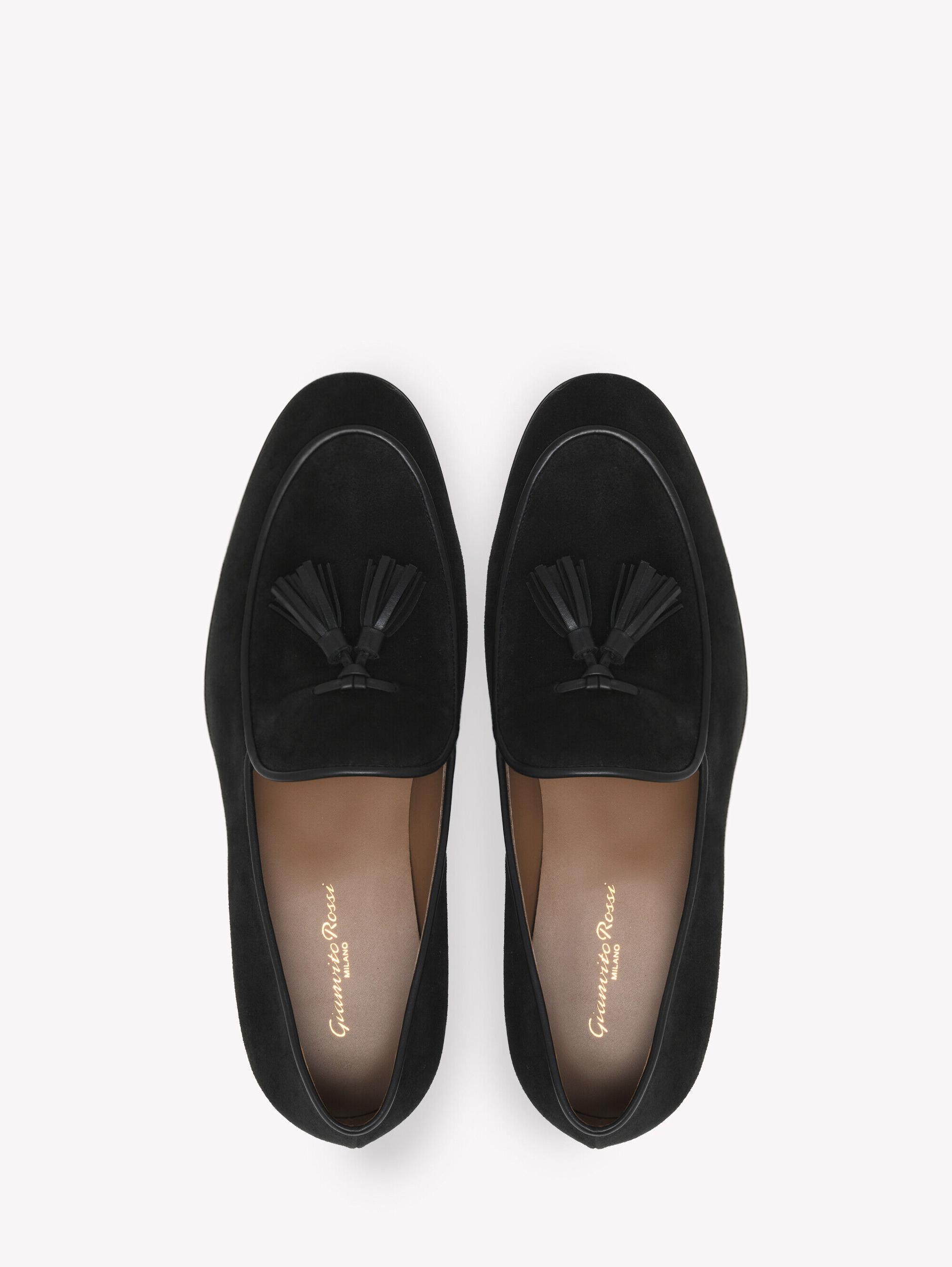 Set on a 20mm heel, Julio is a round-toe loafer crafted from soft suede. The design is completed with leather piping and a tone-on-tone frontal tassel. Handmade in Italy.