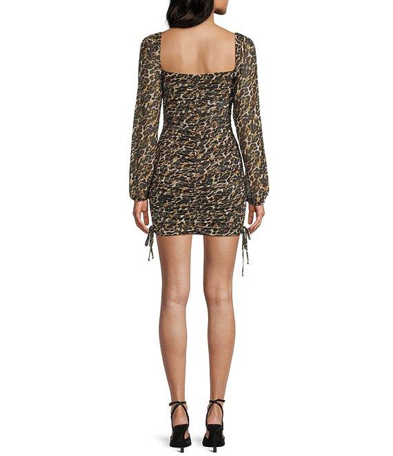 Jump Animal Printed Mesh Square Neck Long Sleeve Ruched Bodycon Dress