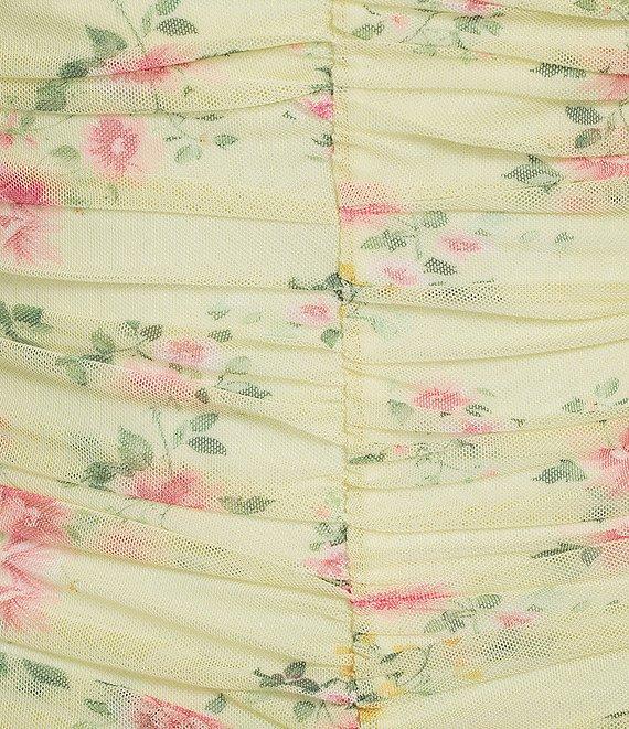 Jump Floral Printed Mesh Square Neck Long Sleeve Ruched Bodycon Dress