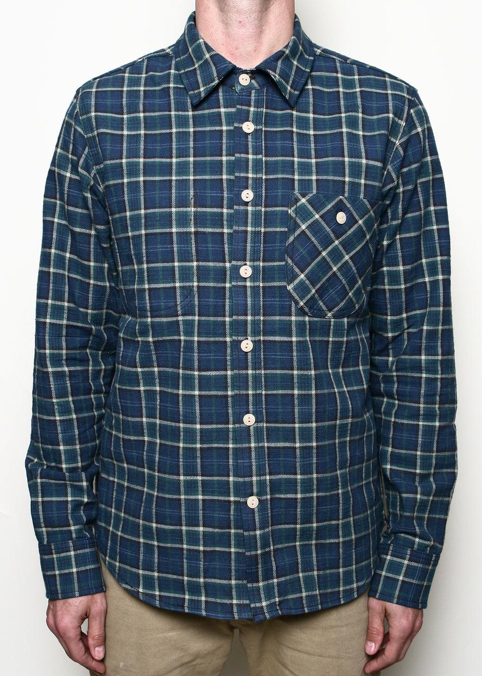 FIT // Slim Fit FABRIC // 7oz 100% slub cotton printed Japanese plaid – 1 exterior chest pocket– 1 interior chest pocket– Signature large sleeve placket– Box pleat at back yoke– Melamine buttons made in USA– Natural herringbone locker loop– Sewn in Los Angeles, Calif. HOW WE MEASURE OUR TOPS // SIZING GUIDE Measurement