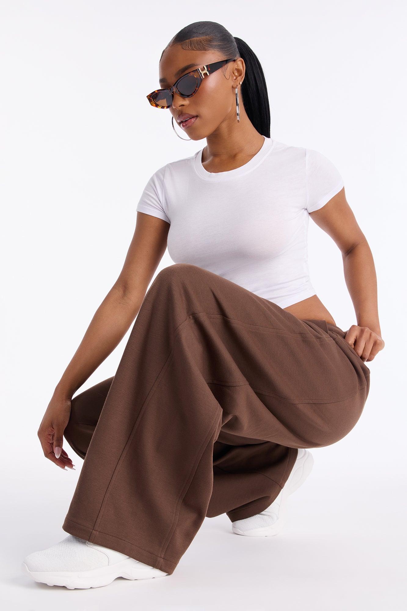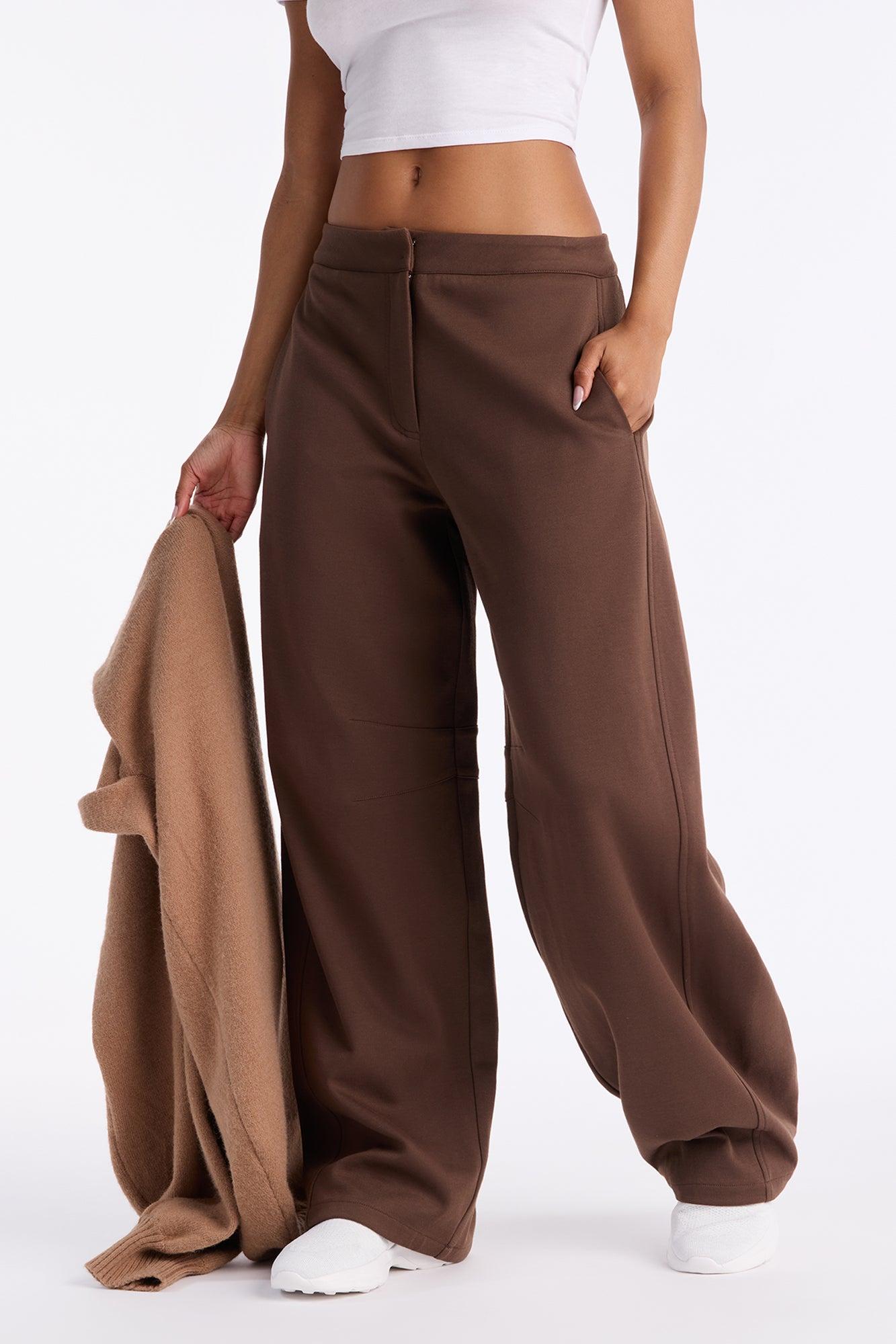 Juni Heavy Knit Jersey Barrel Leg Pant 31″ - Chocolate Female