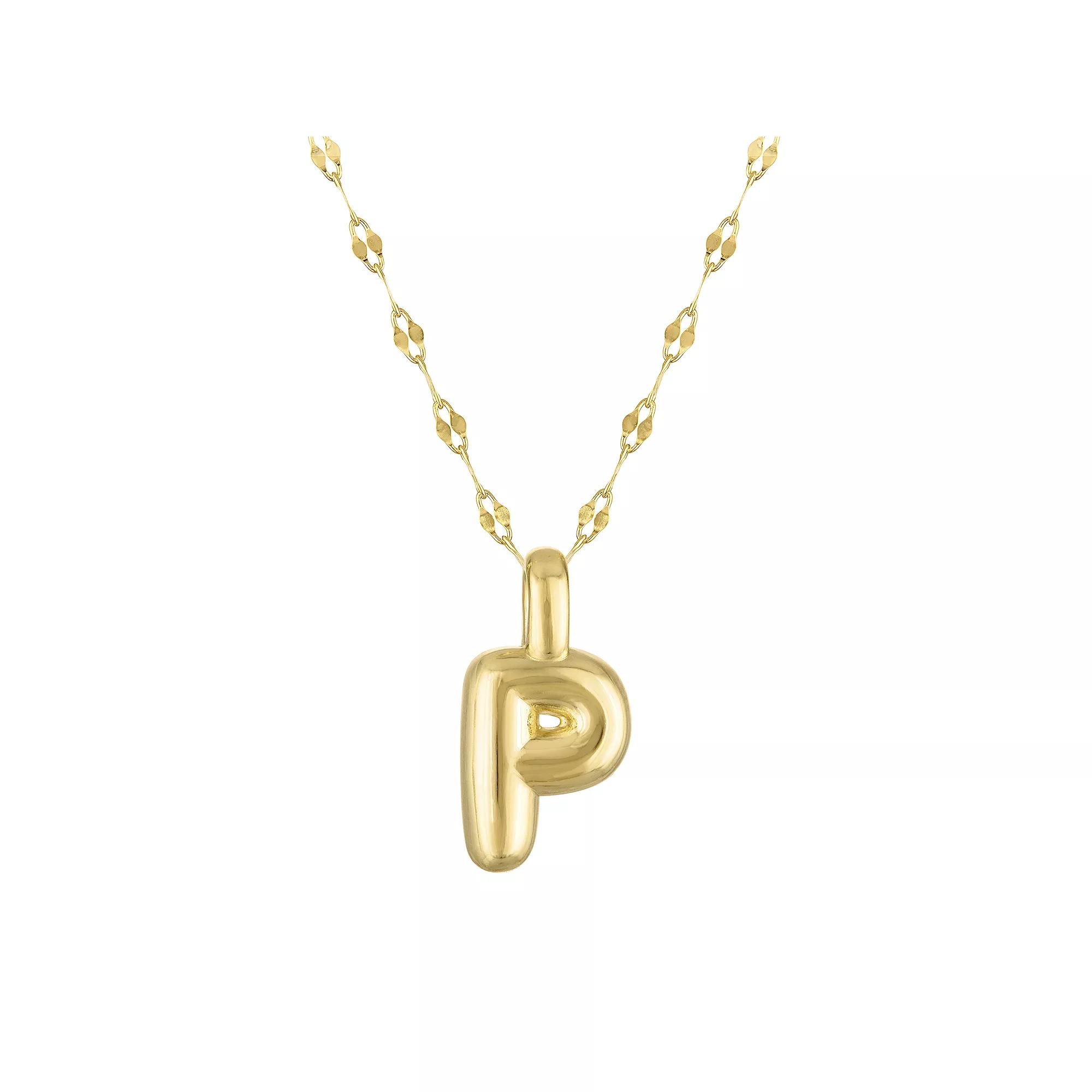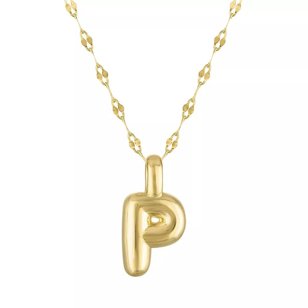 Sweet and personal, this Junior Jewels 14k gold over silver bubble initial pendant necklace adds a custom touch to her jewelry collection. Its playful design makes it a standout favorite. Click on this JEWELRY & WATCHES GUIDE to learn about fit, styles, materials and more! Sweet and personal, this Junior Jewels 14k gold over silver bubble initial pendant necklace adds a custom touch to her jewelry collection. Its playful design makes it a standout favorite. Click on this JEWELRY & WATCHES GUIDE to learn about fit, styles, materials and more! FEATURES Dimensions: 14 mm x 9 mm Chain length: 14.5 in. + 2-in. extender Chain type: mirror link Clasp: lobster-claw Nickel free Metal: sterling silver Plating: 14k gold Finish: polished Packaging: boxed Size: 15.5. Color: Gold Tone P. Gender: female. Age Group: adult. Material: Gold Over Sterling.