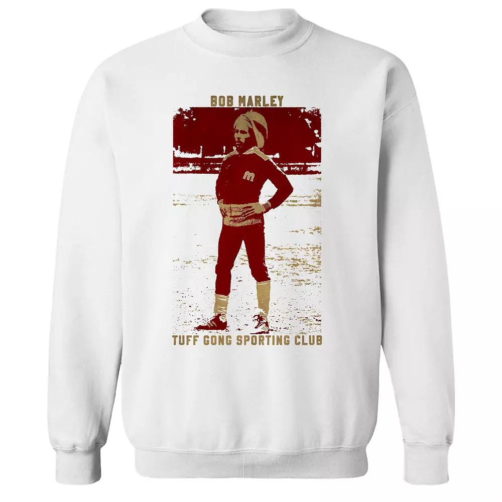 Reggae gives relaxed vibes and so will this Junior's Bob Marley Tuff Gong Sporting Graphic Fleece Sweatshirt.FEATURES Official Bob Marley Merchandise. Licensed by Bravado. Long sleeves CrewneckFABRIC & CARE Fleece, Cotton Machine wash Imported Size: Medium. Color: White. Gender: female. Age Group: adult. Material: Fleece|Cotton.