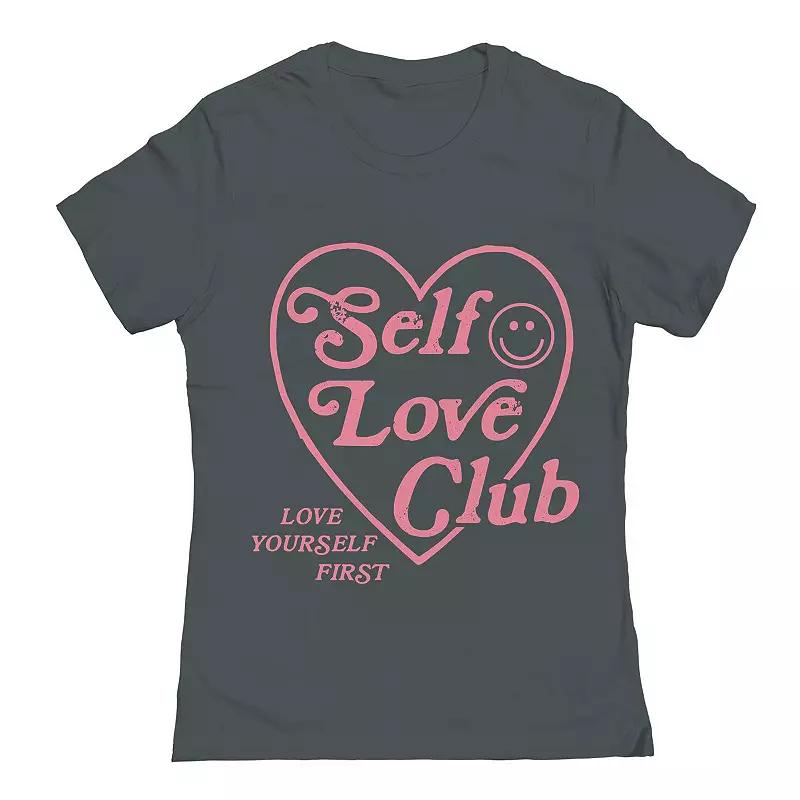 Love. Laugh. Wear a tee. Celebrate Valentine's Day your way with this Junior's Self Love Valentine's Day Graphic Tee.FEATURES Short sleeves CrewneckFIT & SIZING Slim fitFABRIC & CARE Cotton Machine wash Imported Size: Large. Color: Heavy Metal. Gender: female. Age Group: adult.