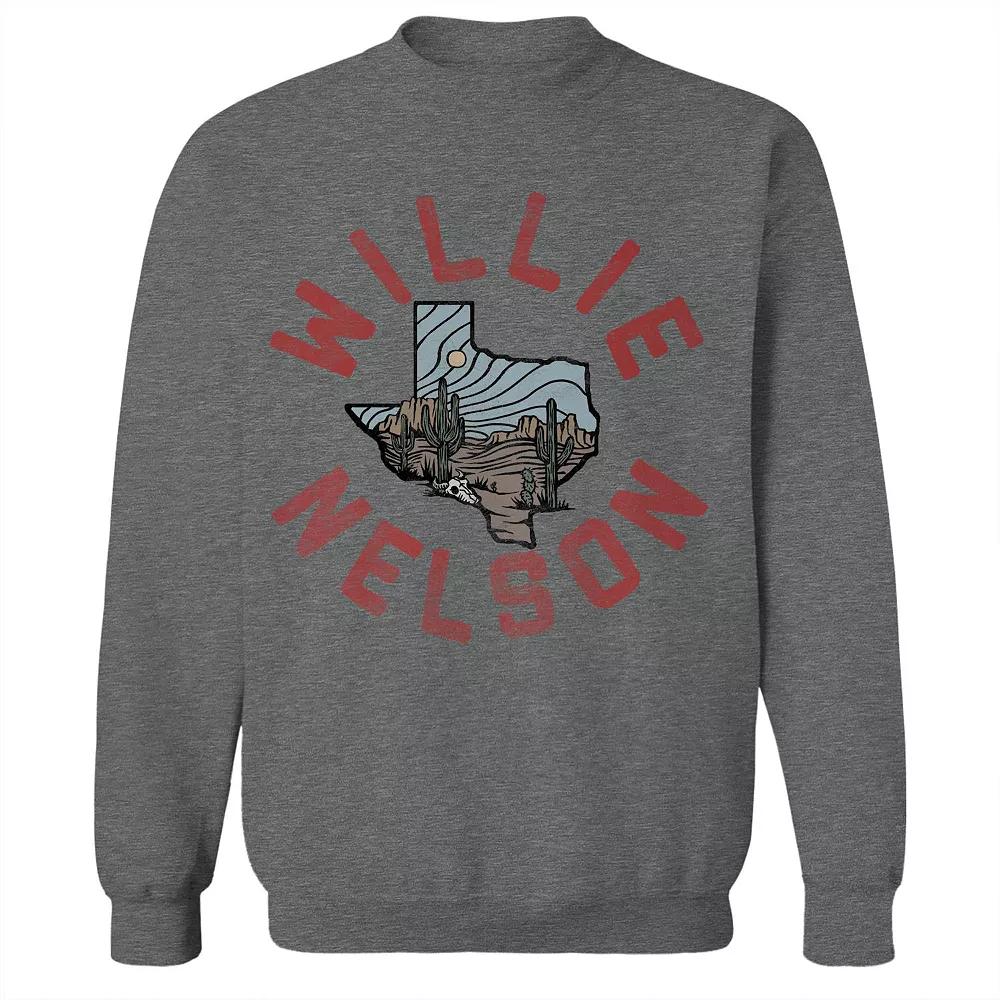 This Junior's Willie Nelson Texas Desert Graphic Fleece Sweatshirt will always be on your mind if you don't get it today!FEATURES Official Willie Nelson Merchandise. Licensed by Bravado. Long sleeves CrewneckFABRIC & CARE Fleece, Cotton Machine wash Imported Size: Small. Color: Graphite Heather. Gender: female. Age Group: adult. Material: Fleece|Cotton.
