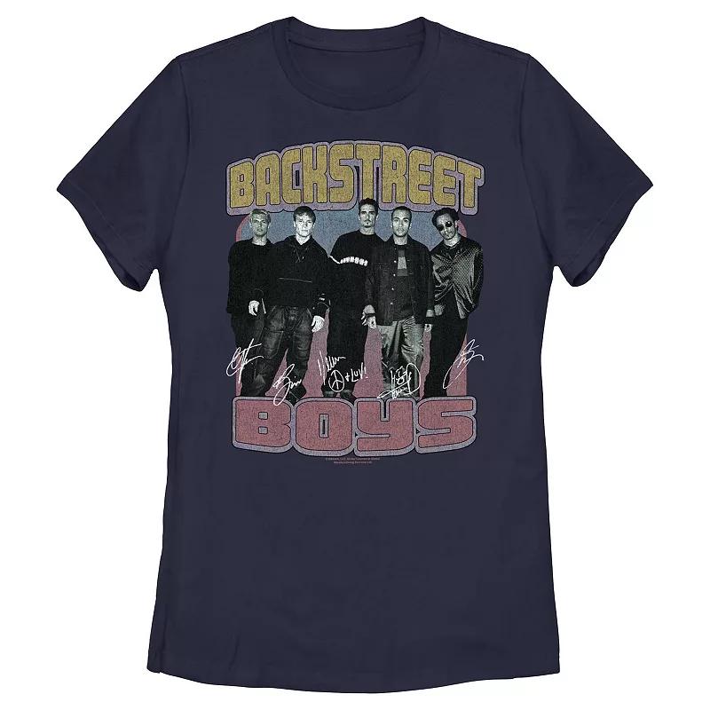 Shell love the look and feel of this Juniors Backstreet Boys Signatures Graphic Tee. FEATURES Crewneck Short SleevesFABRIC & CARE Cotton Machine wash Imported Size: X Large. Color: Navy. Gender: female. Age Group: adult.
