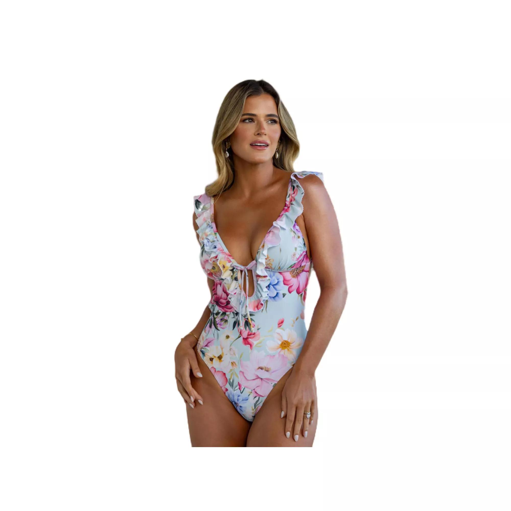 Make a splash with the charming design of CUPSHEs one-piece that beautifully combines playful elegance with vintage vibes. Featuring flutter straps, an open back, and a delightful ruffled bow tie, this swimsuit offers secure coverage and a flattering cheeky fit, perfect for carefree days by the pool or beach.Click on this WOMENS GUIDE to find the perfect fit and more!Make a splash with the charming design of CUPSHEs one-piece that beautifully combines playful elegance with vintage vibes. Featuring flutter straps, an open back, and a delightful ruffled bow tie, this swimsuit offers secure coverage and a flattering cheeky fit, perfect for carefree days by the pool or beach. Click on this WOMENS GUIDE to find the perfect fit and more!FEATURES V-neck Adjustable straps Removable soft bra cups WirelessFIT & SIZING Moderate coverage Tie closureFABRIC & CARE Polyester, spandex Hand wash Imported Size: Large. Color: Light Blue Bloom. Gender: female. Age Group: adult.